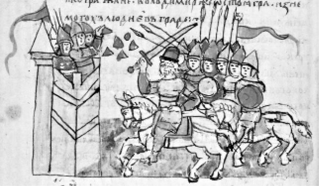 Окружение Корсуня войсками Владимира Святославича. Миниатюра из Радзивилловской летописи