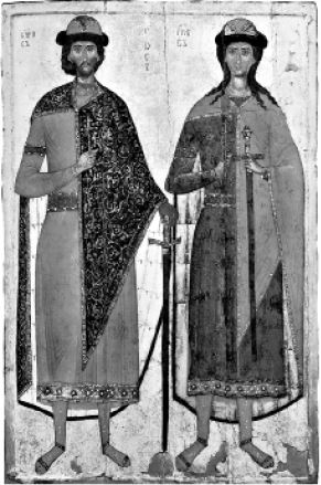 Князья Борис и Глеб. Икона середины XIV в.