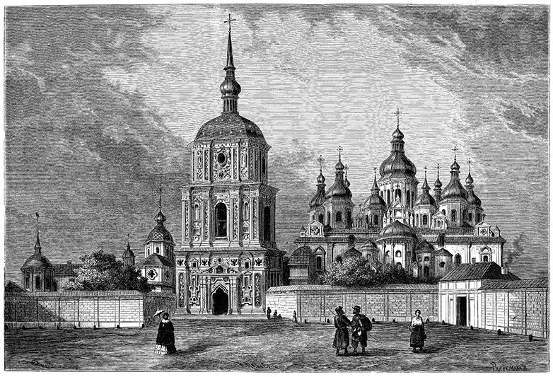 Киевский Софийский собор (вид с восточной стороны). Гравюра XIX в.