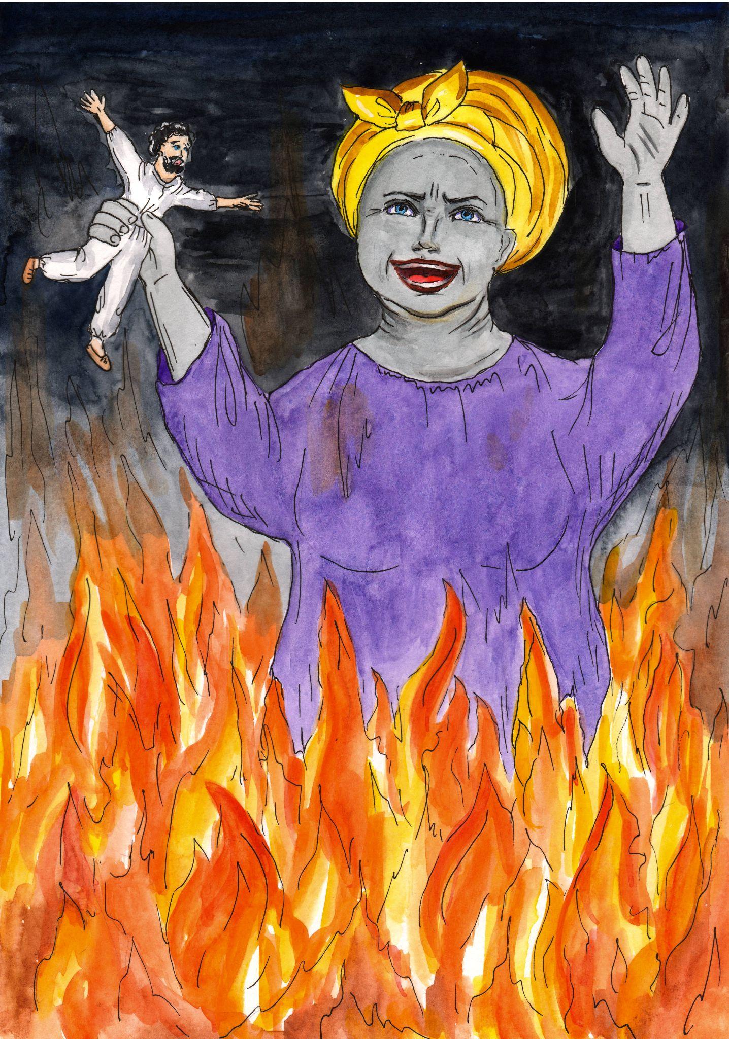 В ту ночь Чарагим уснул только под утро. И сразу увидел странный сон. В нём была Серая Роза. Она сидела посреди чёрной пустыни у костра и смеялась дьявольским смехом. Была она гигантского размера, как великанище. Вокруг неё летали огромные чёрные птицы.