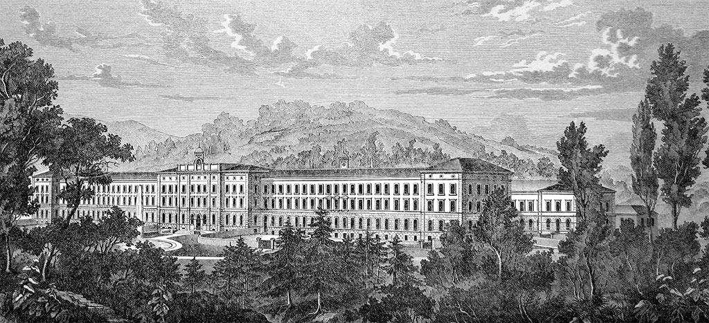 Психиатрическая клиника «Бургхольцли». Книжная репродукция гравюры, 1890 г.