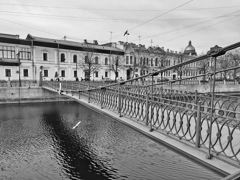 Мост через реку Мойку с видом на 3-й полицейский участок Казанской части Петрограда.
