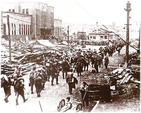 Мой взвод ехал на открытой платформе вместе с артиллеристами и их орудиями. Когда проехали водохранилище, стали слышны звуки пулемётных очередей, беспорядочные взрывы, одиночные выстрелы. Стало ясно – идет бой. В районе Экинохары поступил приказ рассредоточиться и продвигаться вперед. Но только мы начали выдвигаться на боевые позиции, то попали под такой шквальный огонь японских пулемётов и гранатомётов, что не только головы – пальца поднять нельзя было. В первой же атаке мой взвод потерял пятерых бойцов. Благо тут подоспели наши артиллеристы. Они выкатили свои противотанковые орудия на железнодорожное полотно и прямой наводкой за несколько минут подавили несколько вражеских огневых точек. Командовал артиллеристским расчётом молоденький сержант. Может, это и был будущий герой по фамилии Николайчук, не знаю. Знакомиться было некогда, мы тут же пошли в наступление. Сейчас на станции, названной в честь Бориса Николайчука, на братском захоронении стоит памятный обелиск, может, и мои кореша там лежат.