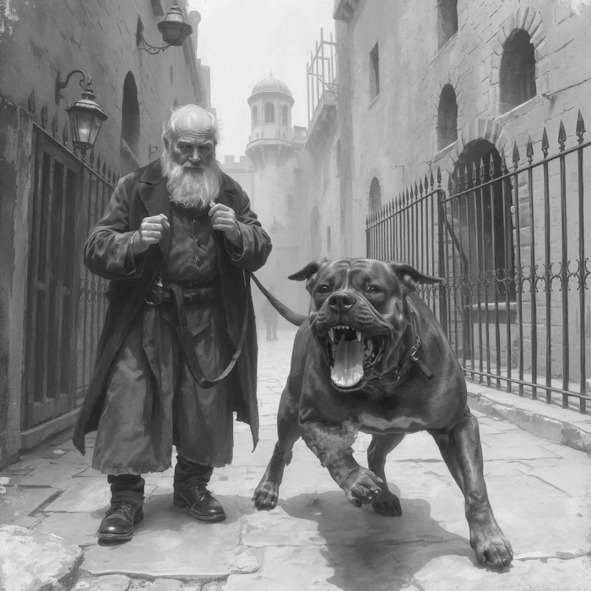 Ростовщик по обыкновению вышел за калитку с собакой, которую держал за ошейник.