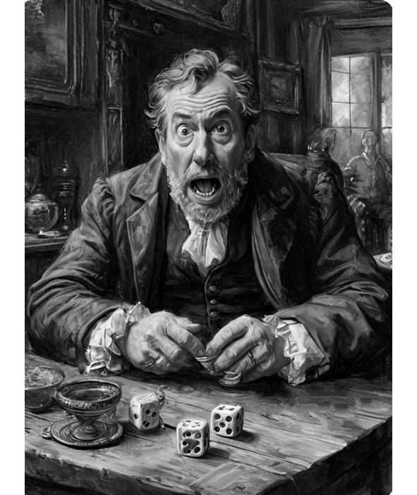Странное происшествие, приведшее к сумасшествию, случилось в тот день, когда напротив мужчины сел молодой человек, почти мальчик. Бальтозар Фуад ухмыльнулся, тряся стакан с костями, ему выпали все шестерки, как обычно, кроме одной кости – на ней была пятерка. Мужчина удивленно приподнял брови, но, не придав значения незначительному событию, продолжил игру, будучи уверенным, что удача, как и всегда, будет на его стороне. Пришла очередь кидать кости противнику, у юноши вылетели все шестерки – зрители ахнули! Бальтозар Фуад впервые за год проиграл! Мужчина решил отыграться, поднял ставку, но проигрывал снова и снова.