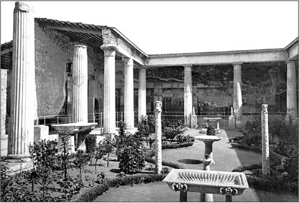 В условиях быстрого роста населения частный дом с внутренним двориком становится уделом состоятельного римлянина. Примером этому служат Помпеи с сохранившимися постройками I века до н. э. – I века н. э. Здесь в основе жилых строений (городских особняков) лежит центрально-осевая композиция – парадный вход, вестибюль, зал с имплювием и двор расположены на одной линии. Подобная череда парадных помещений характерна для большинства частных домов того периода на Италийском полуострове. В античном мире впервые появляется перистиль – внутренний двор, окруженный колоннадой.
