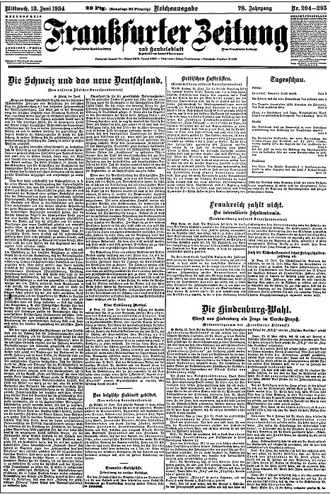 Газета «Франкфуртер Цайтунг» за 1934 г.