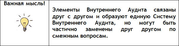 Как видно, все виды (элементы) внутреннего аудита тесным образом связаны между собой, образуя единую Систему Внутреннего Аудита. При этом они могут быть частично заменены друг другом по смежным вопросам.