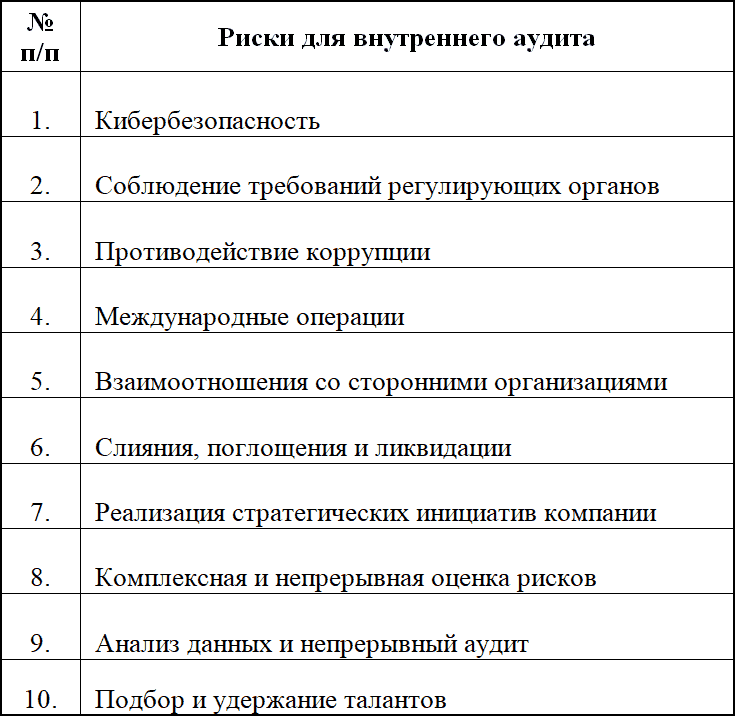 Рисунок 5. ТОП-10 рисков для внутреннего аудита в 2015 году