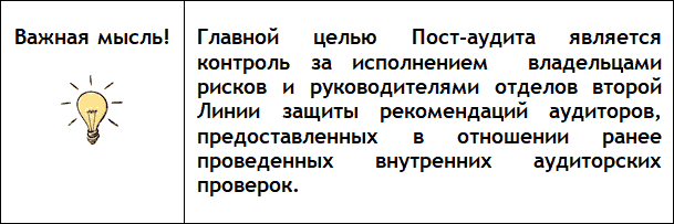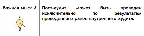 Тем не менее, Пост-аудит может быть проведен исключительно по результатам проведенного ранее внутреннего аудита.