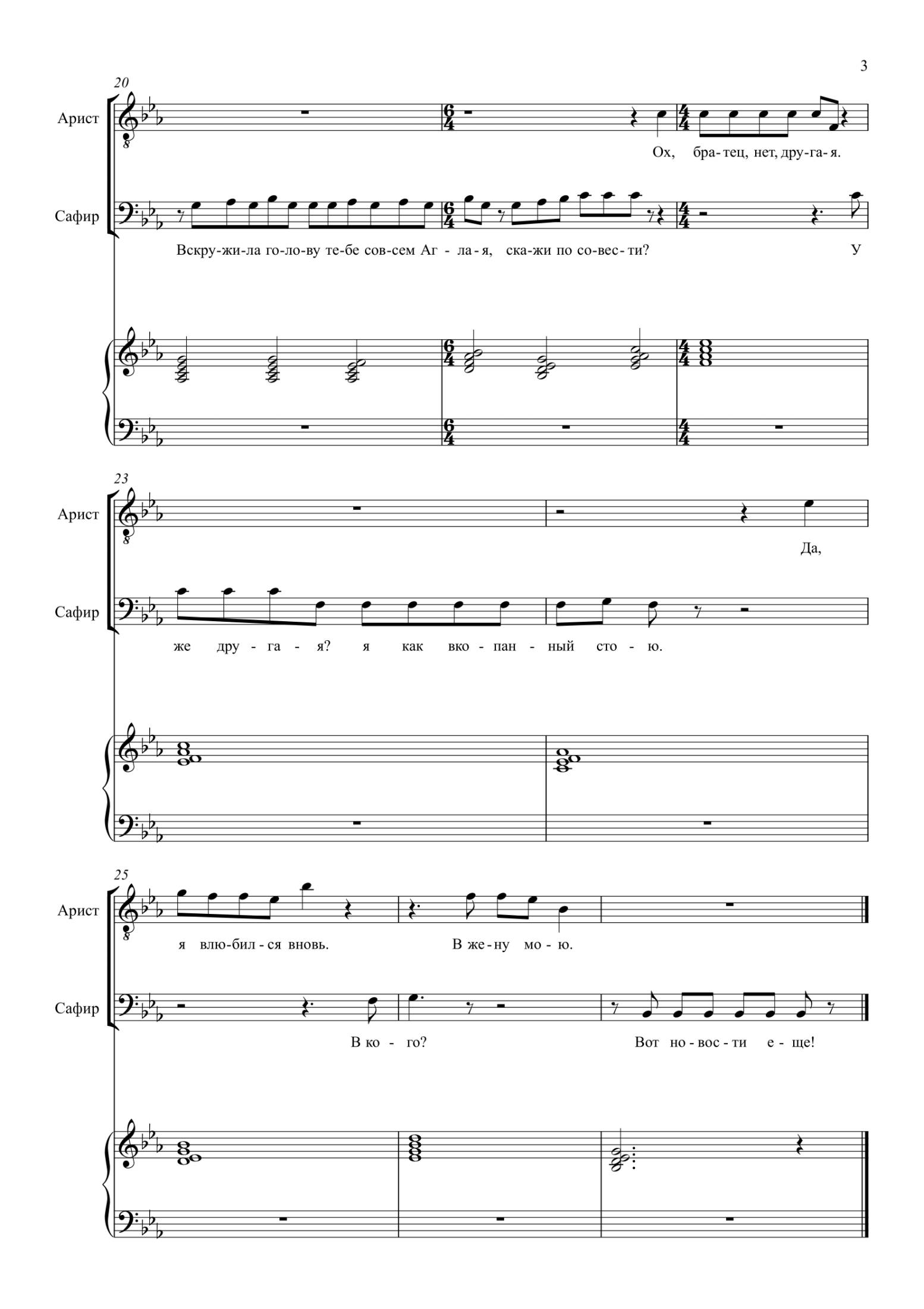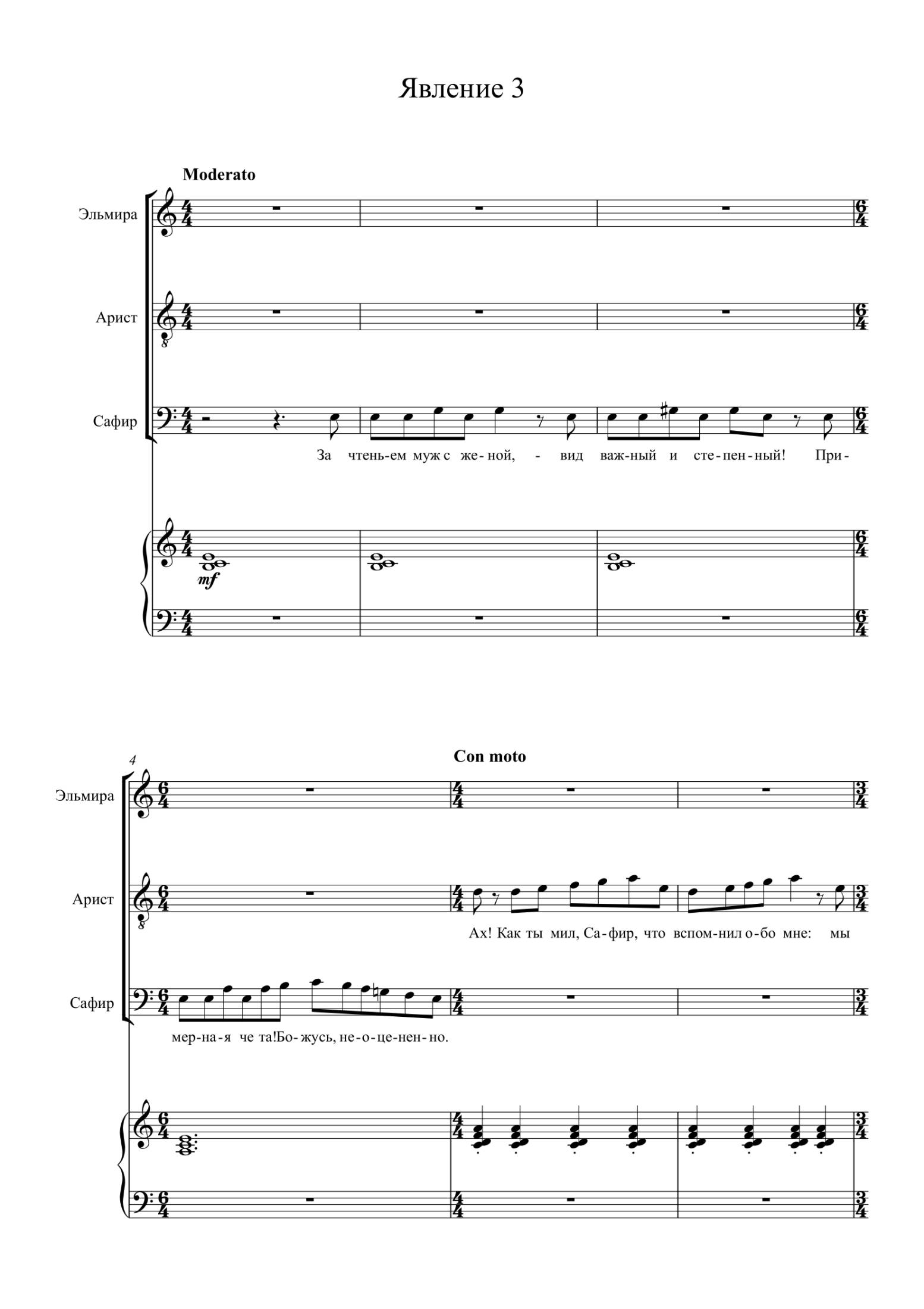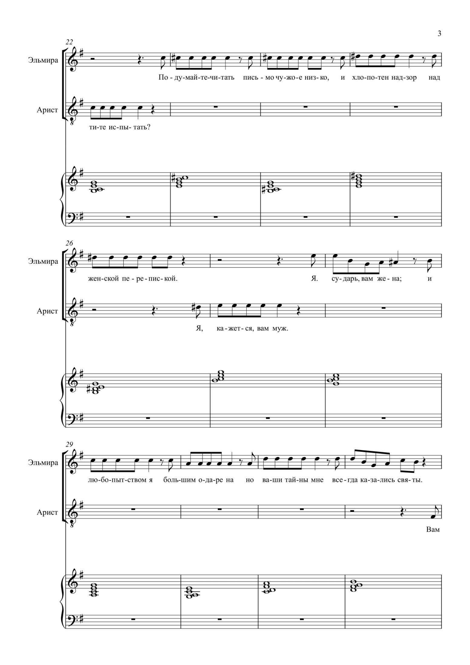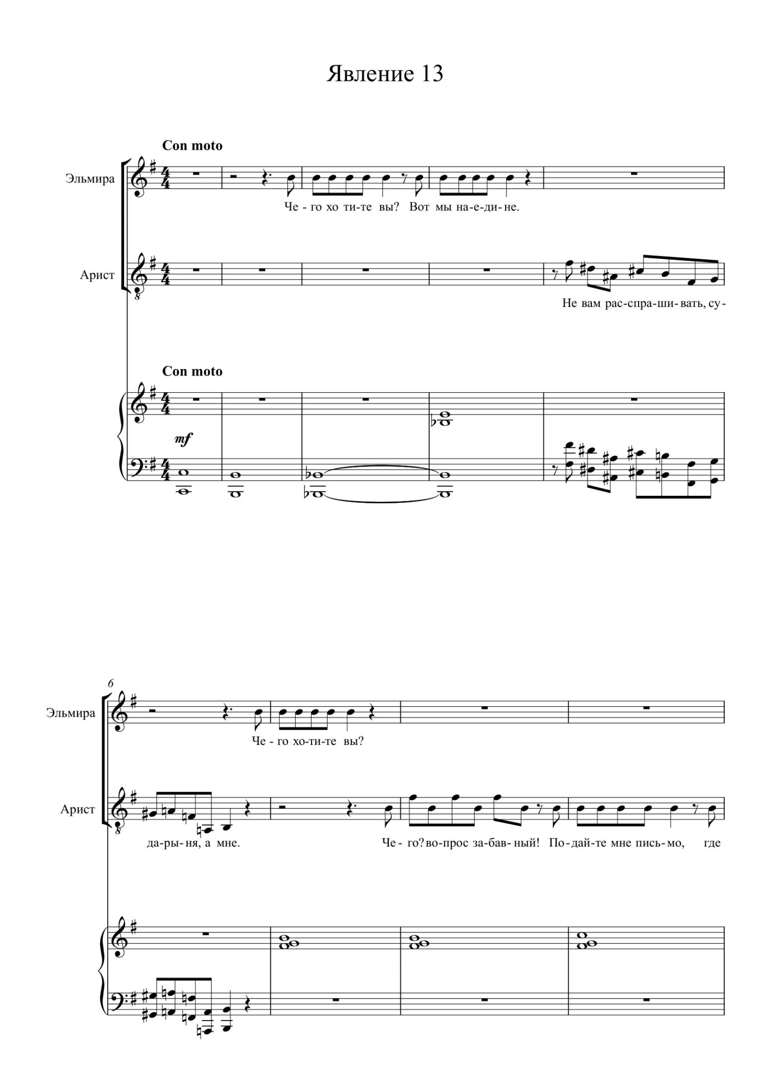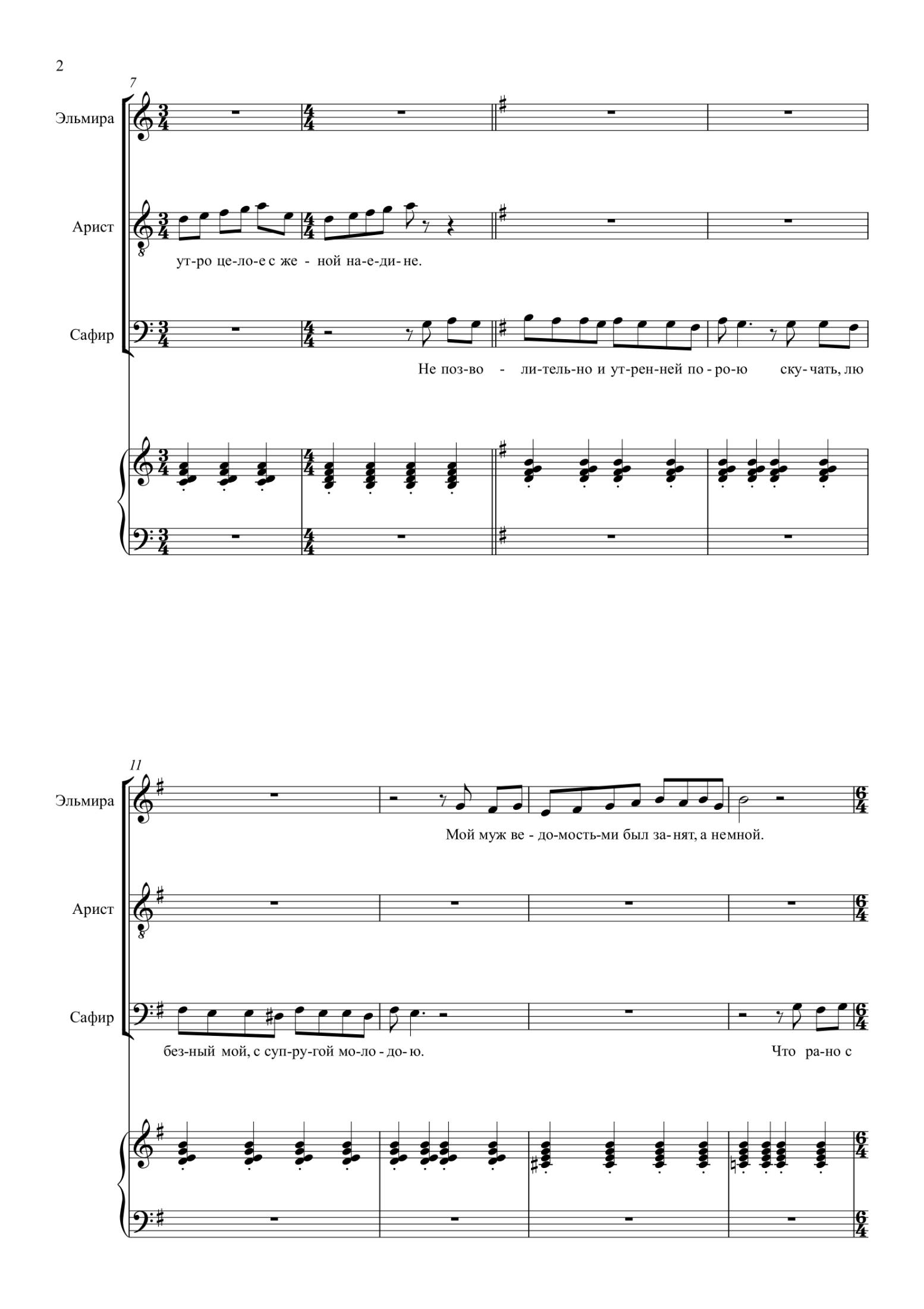 Комедия в одном действии 'Молодые супруги' (автор либретто – А. С. Грибоедов, 1814) для сопрано, тенора и баритона в сопровождении фортепиано