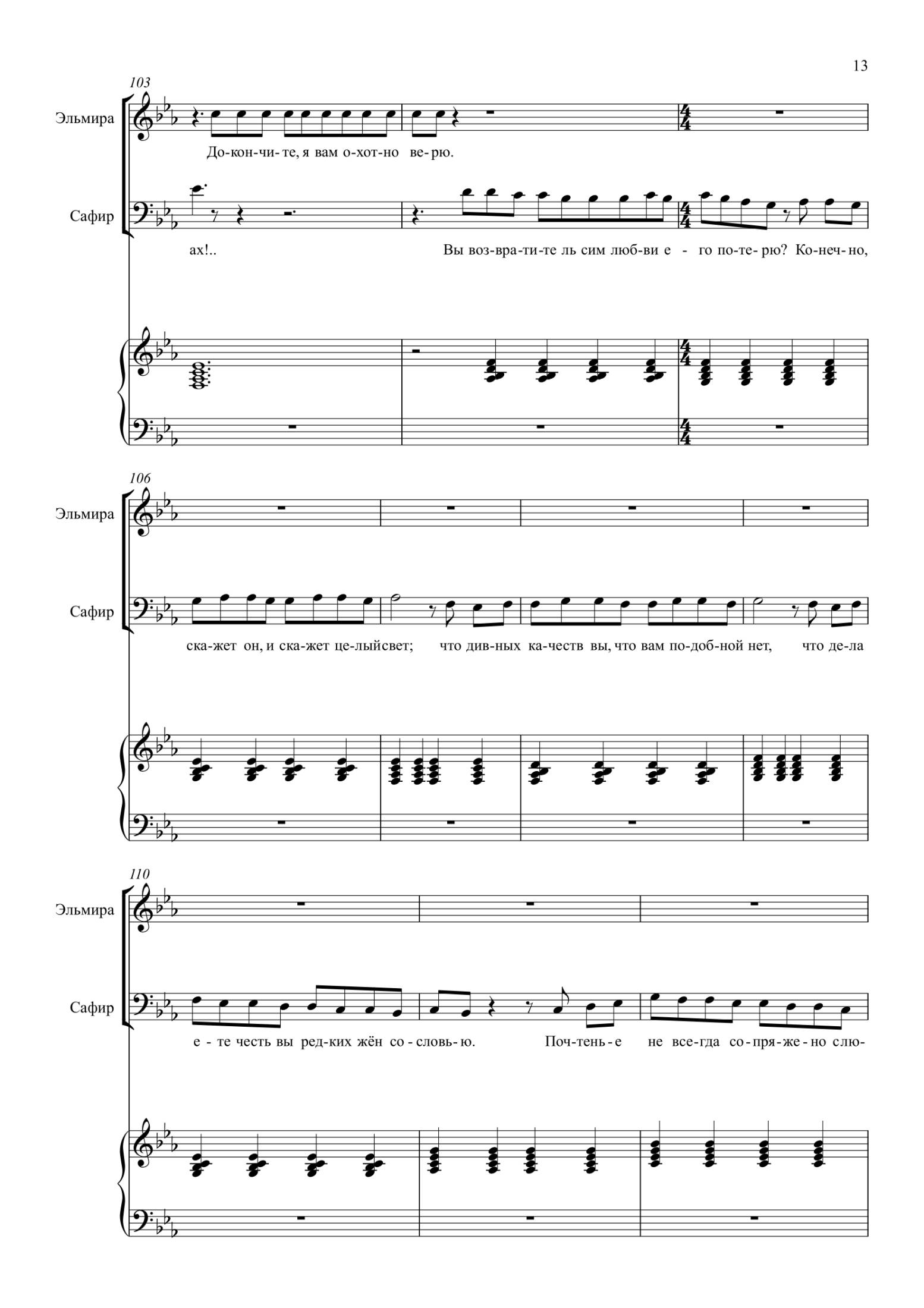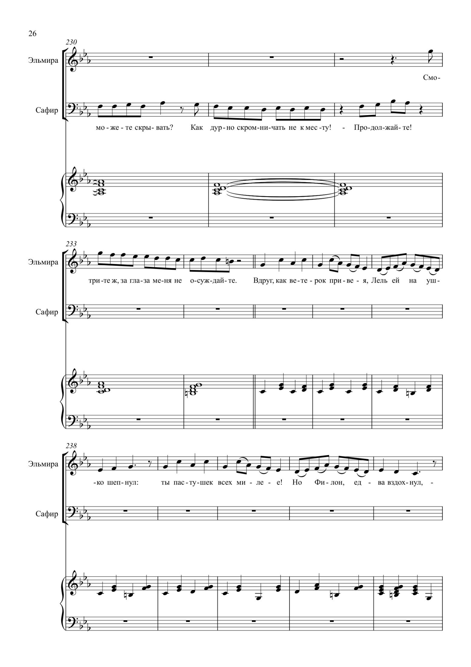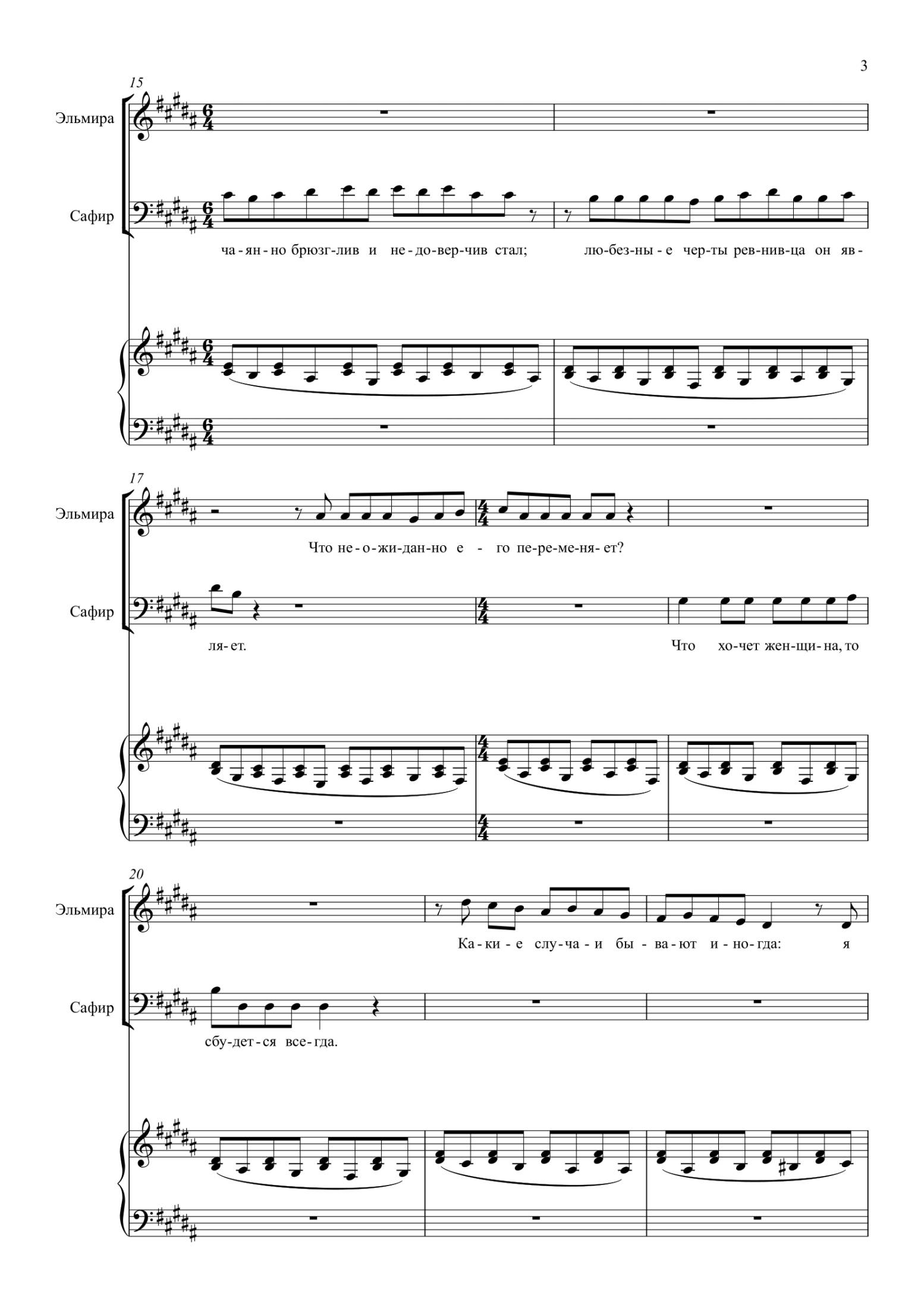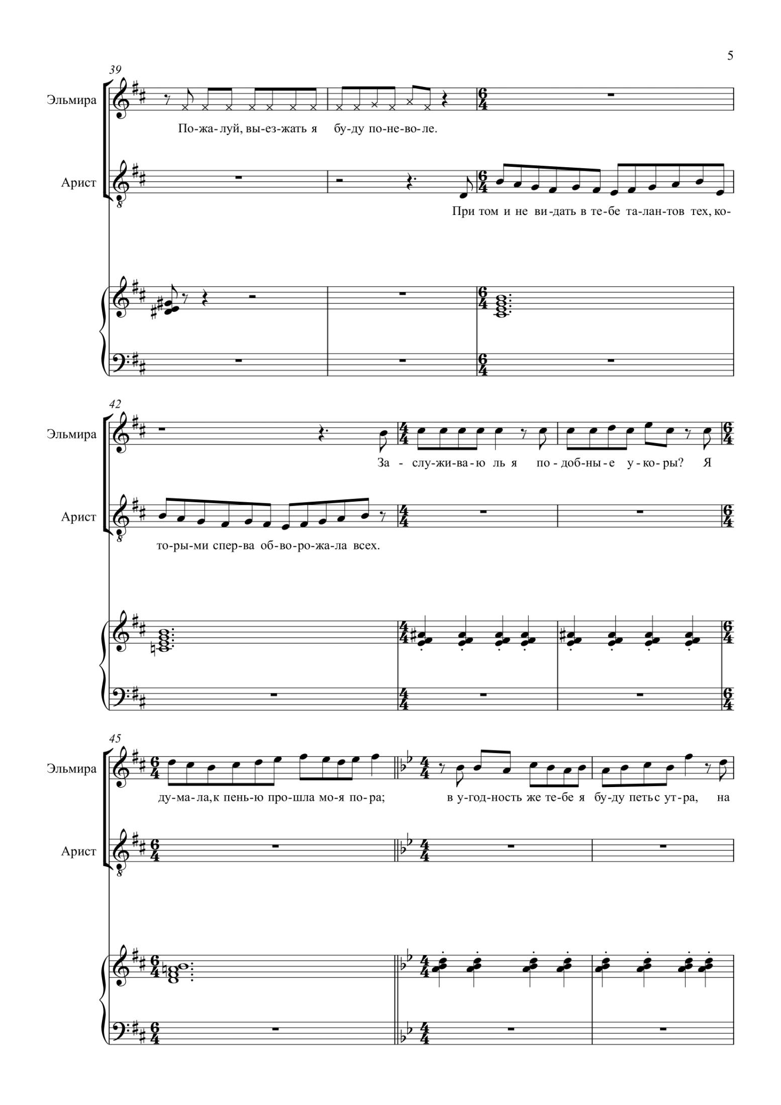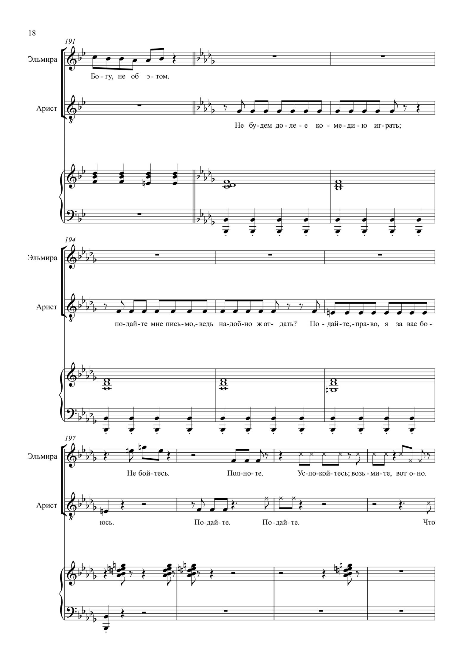 Комедия в одном действии 'Молодые супруги' (автор либретто – А. С. Грибоедов, 1814) для сопрано, тенора и баритона в сопровождении фортепиано