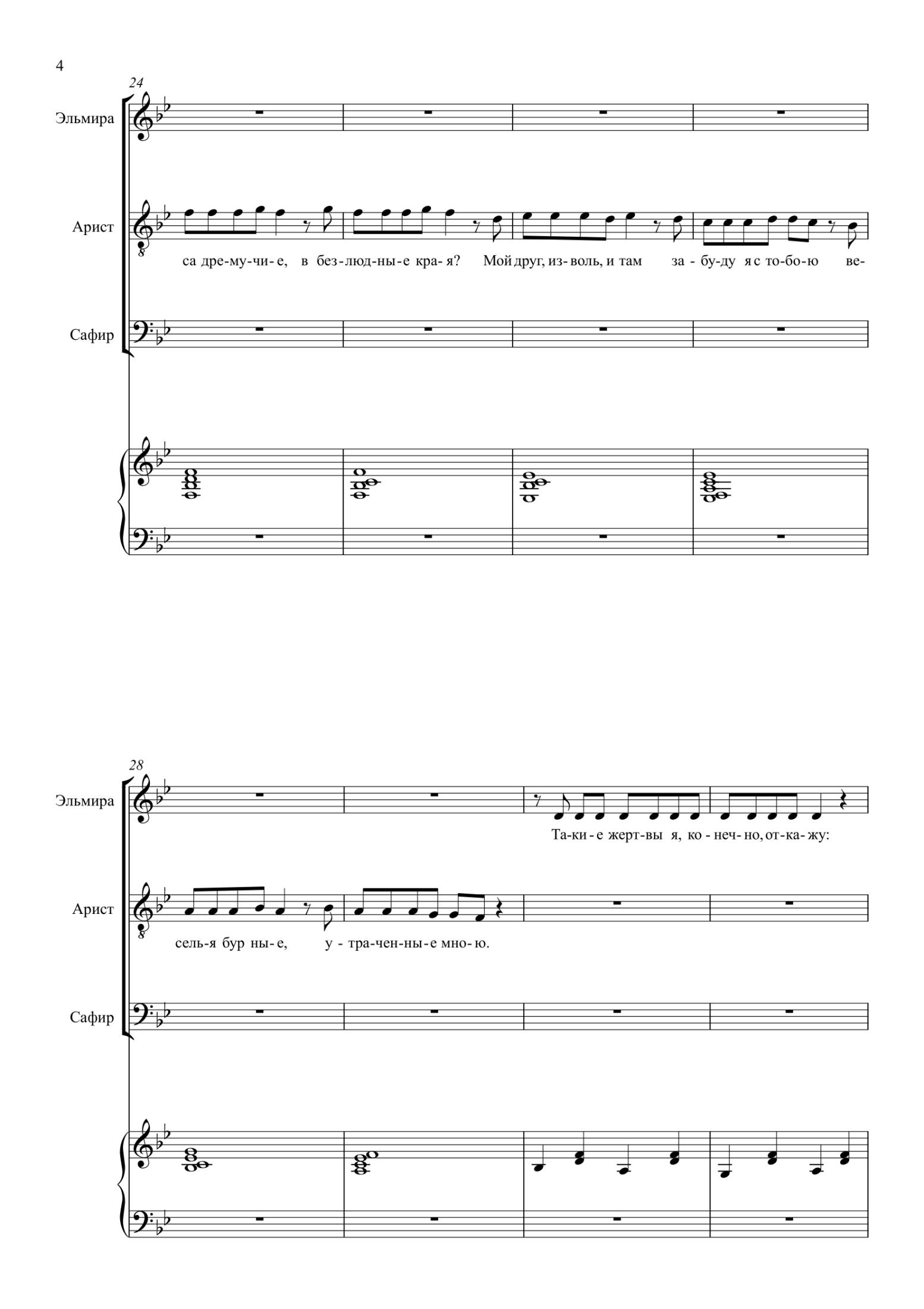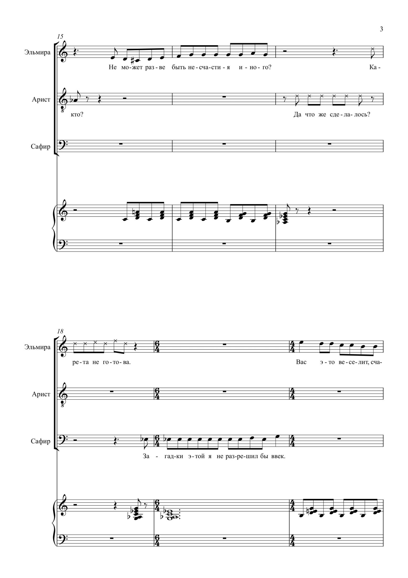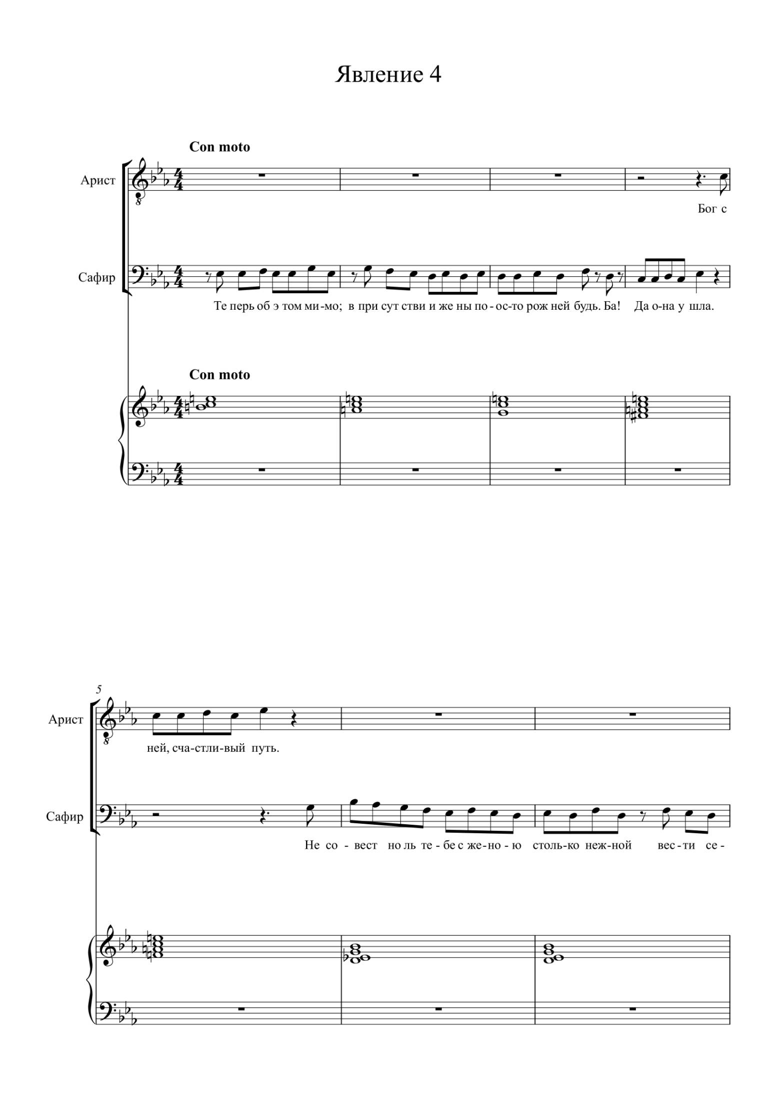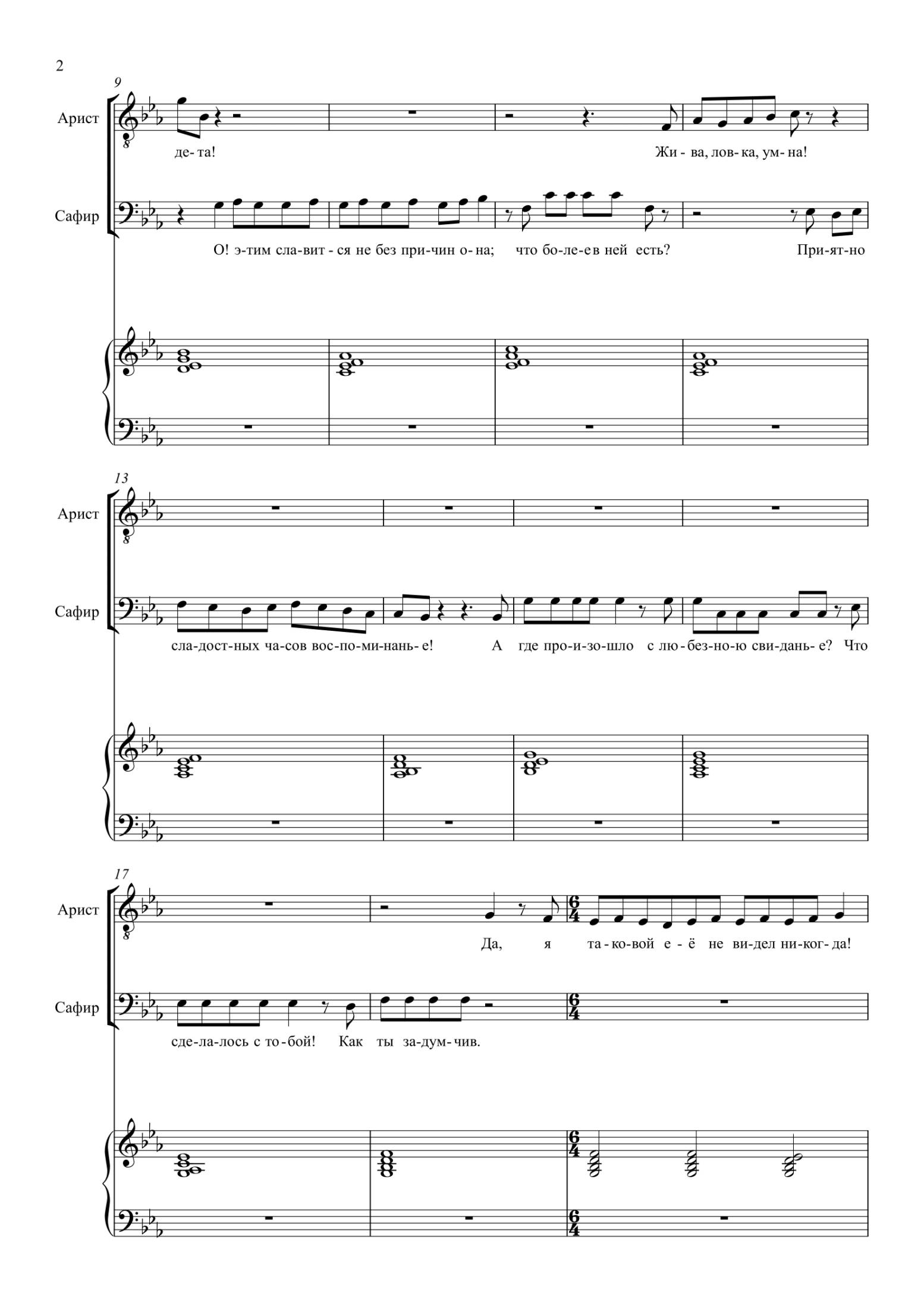 Комедия в одном действии 'Молодые супруги' (автор либретто – А. С. Грибоедов, 1814) для сопрано, тенора и баритона в сопровождении фортепиано