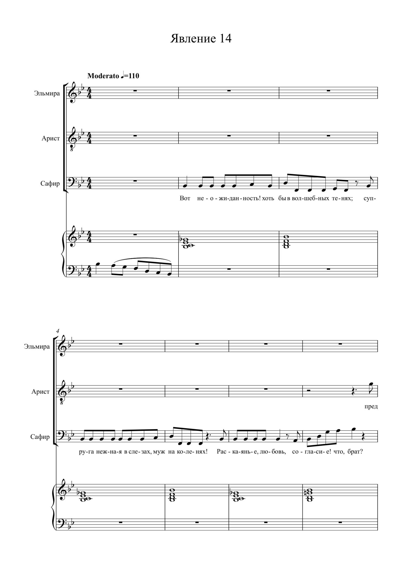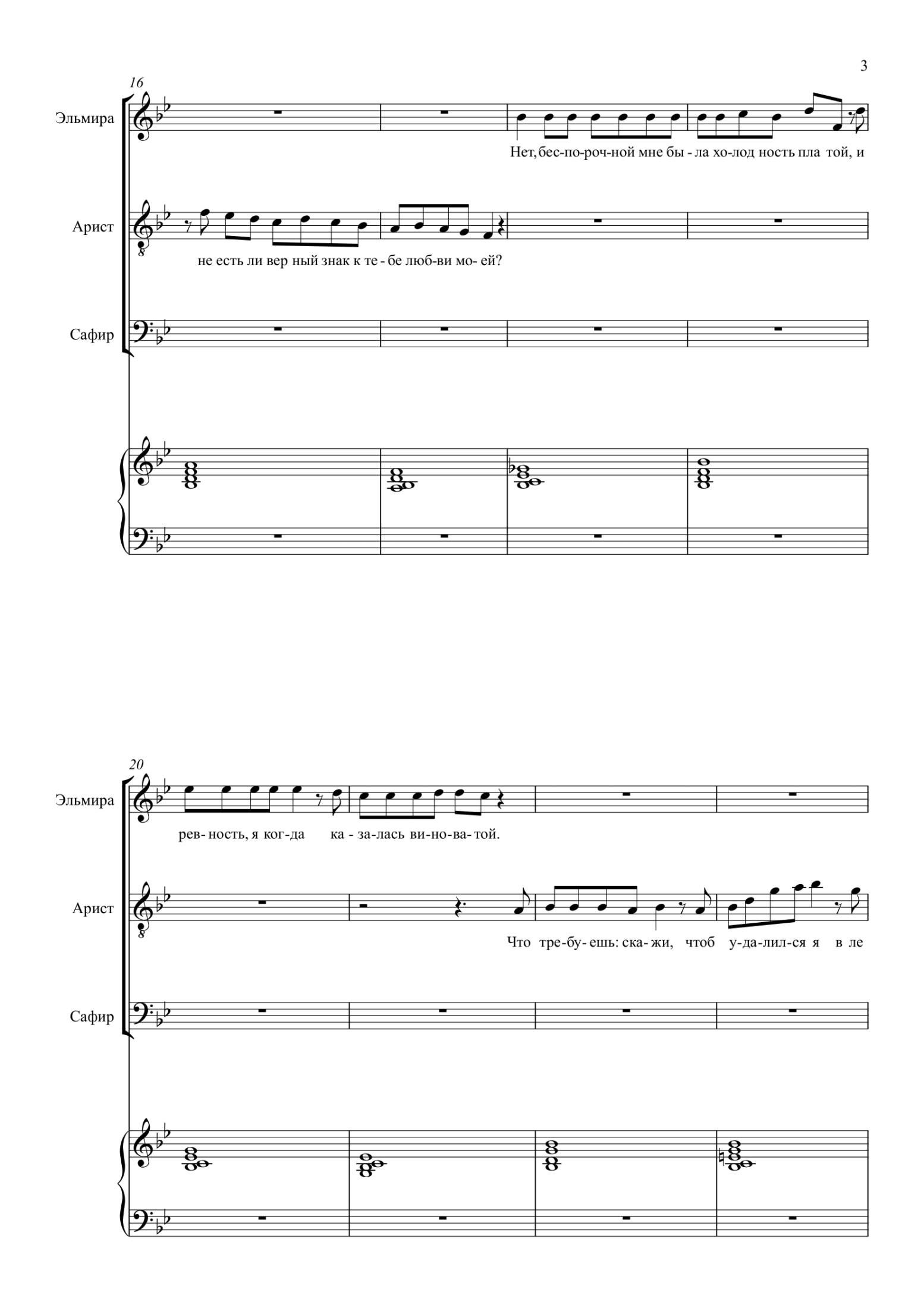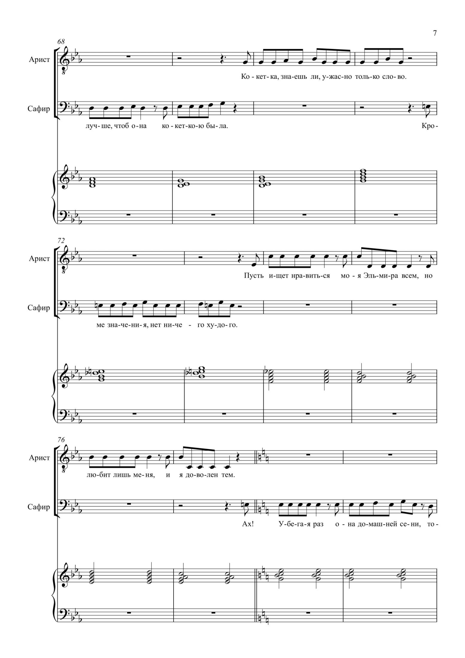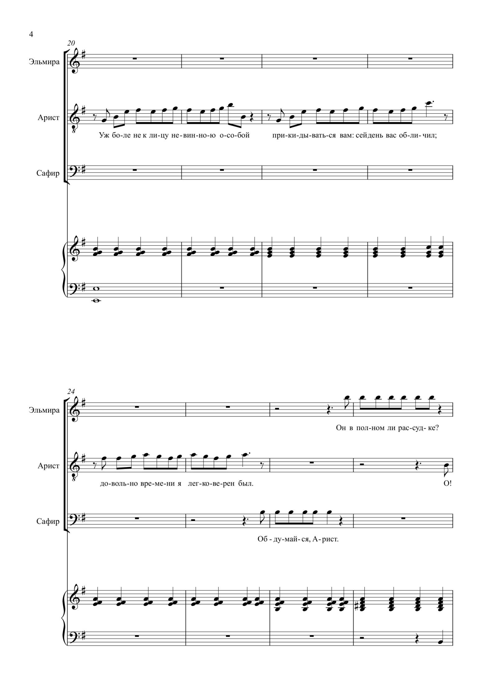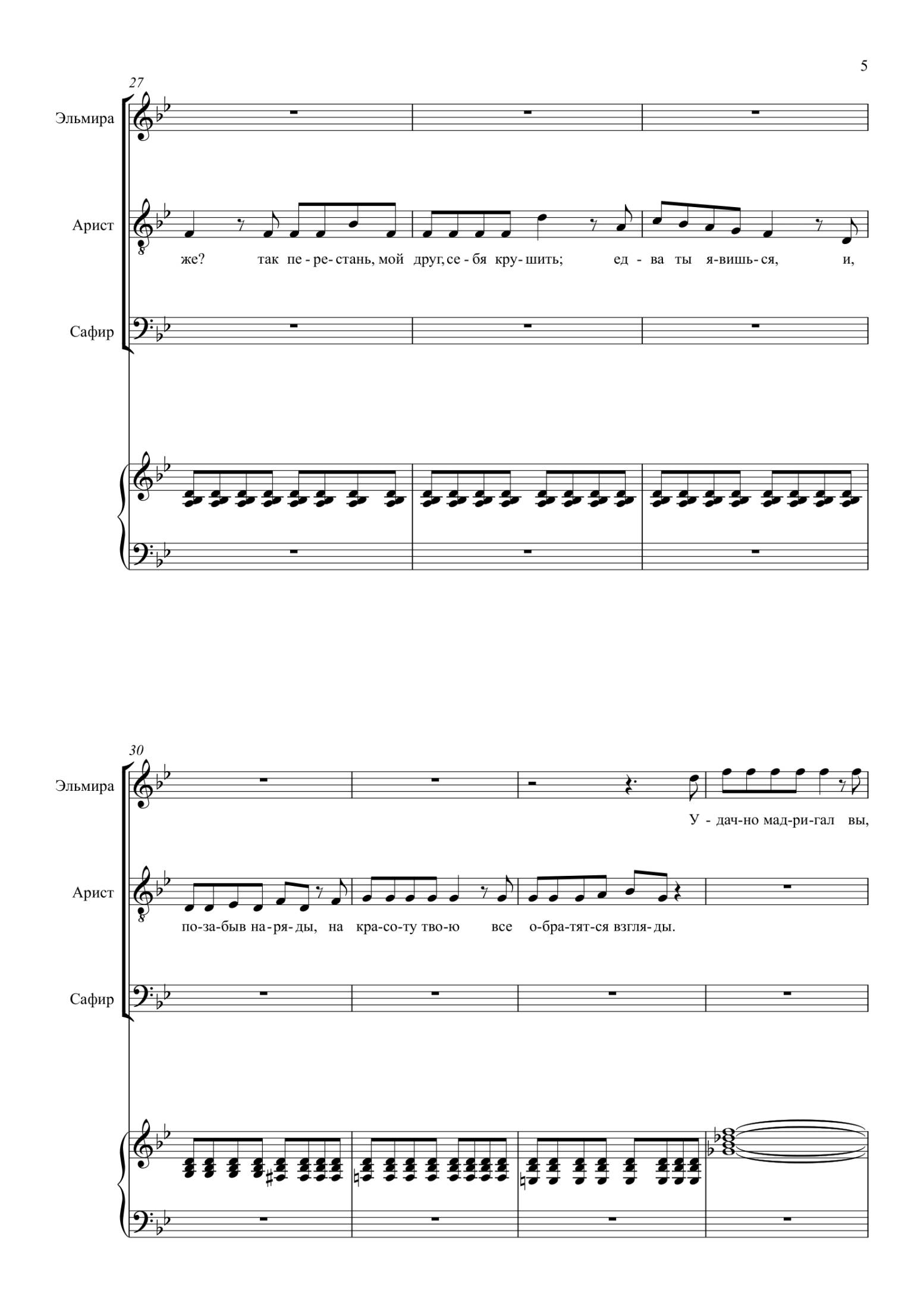 Комедия в одном действии 'Молодые супруги' (автор либретто – А. С. Грибоедов, 1814) для сопрано, тенора и баритона в сопровождении фортепиано