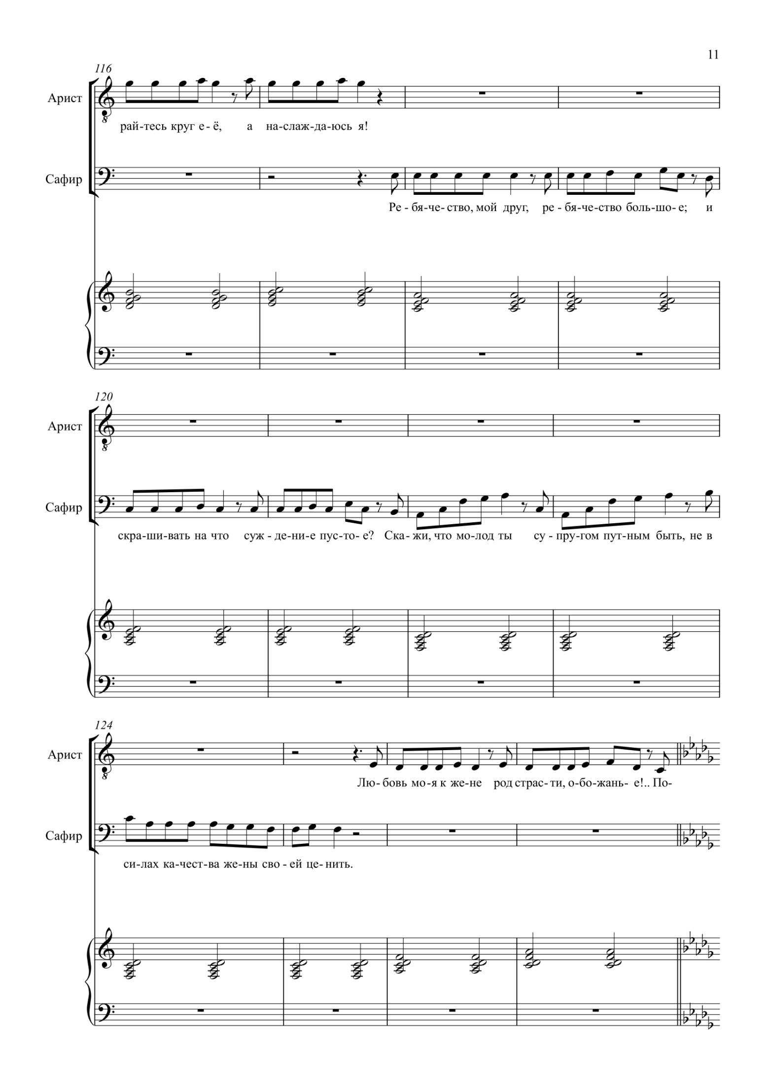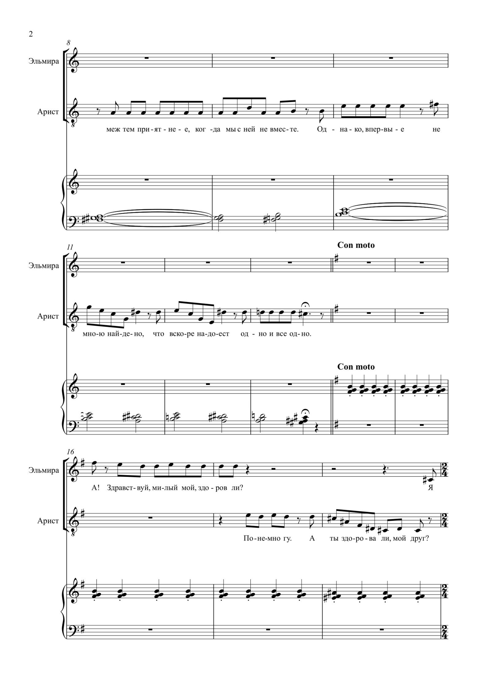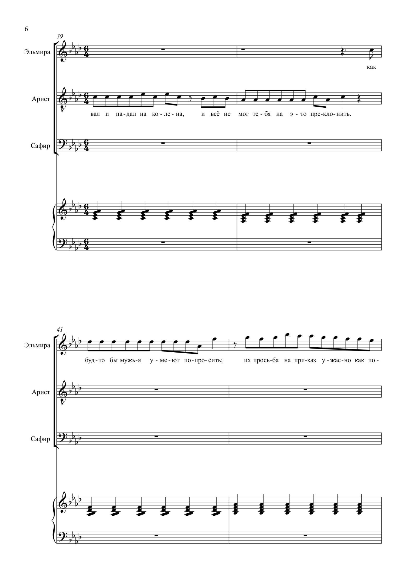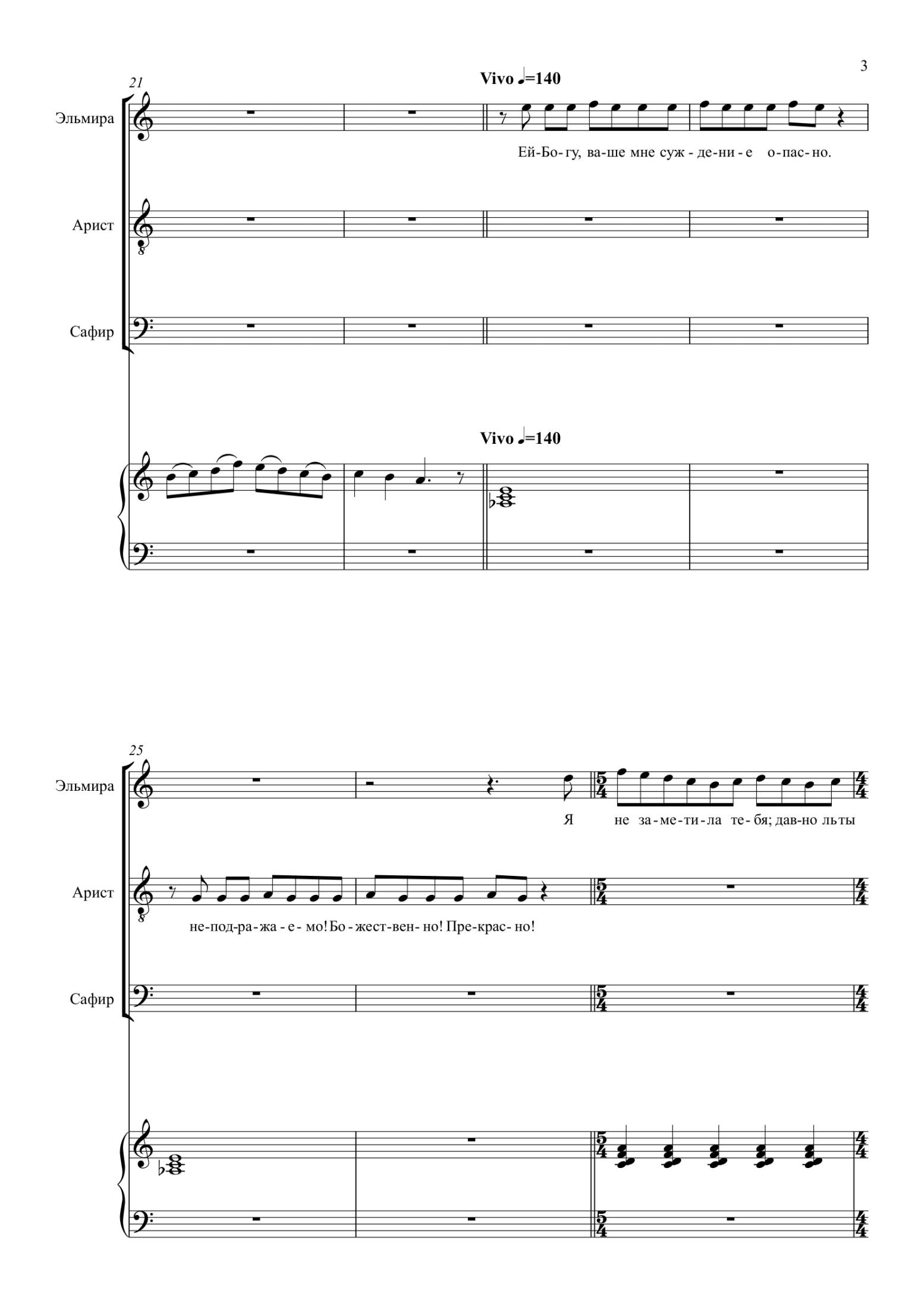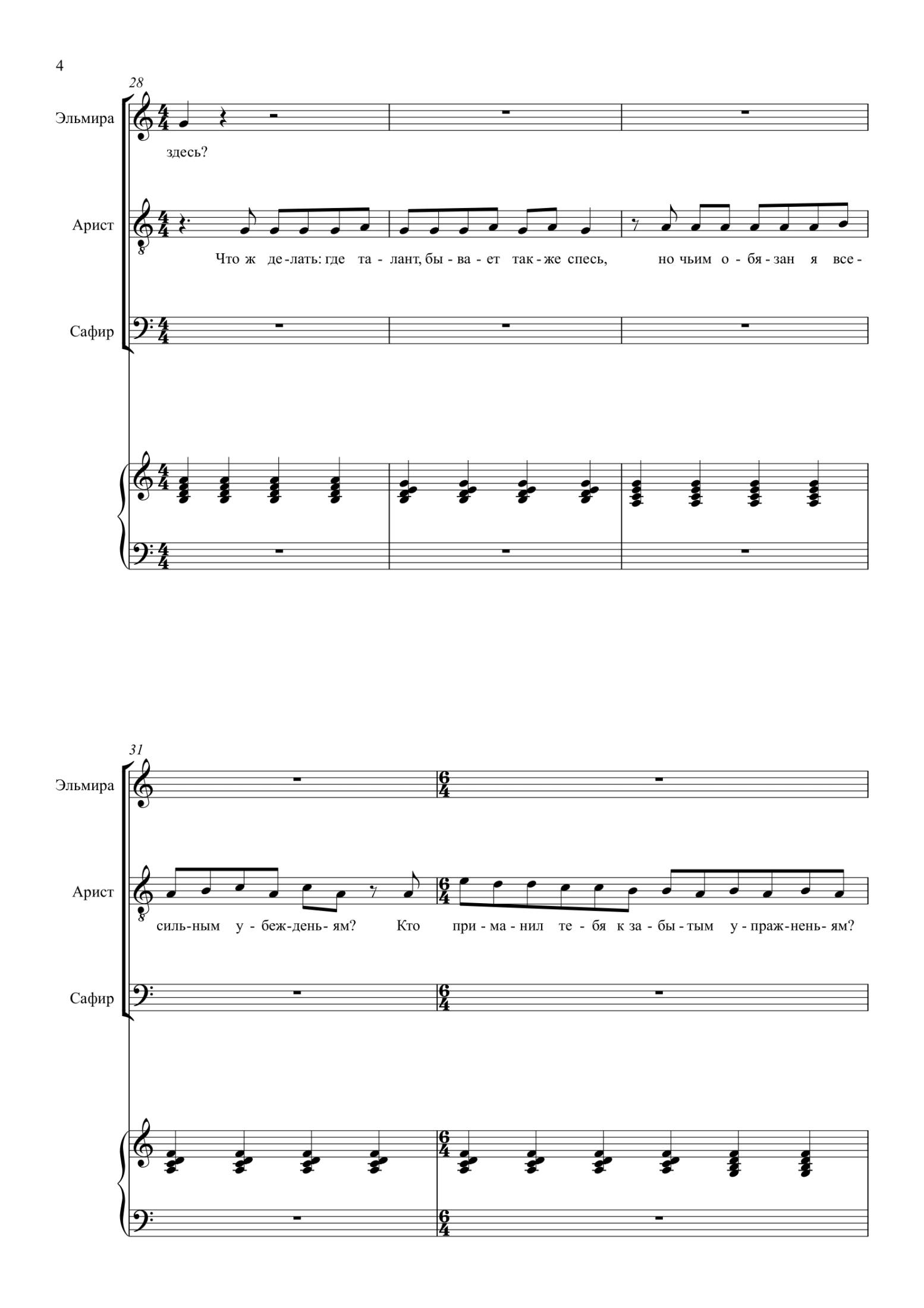 Комедия в одном действии 'Молодые супруги' (автор либретто – А. С. Грибоедов, 1814) для сопрано, тенора и баритона в сопровождении фортепиано