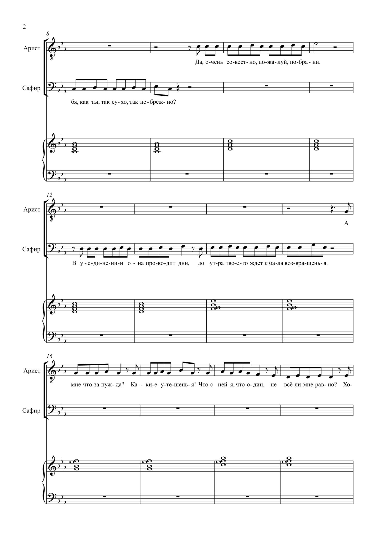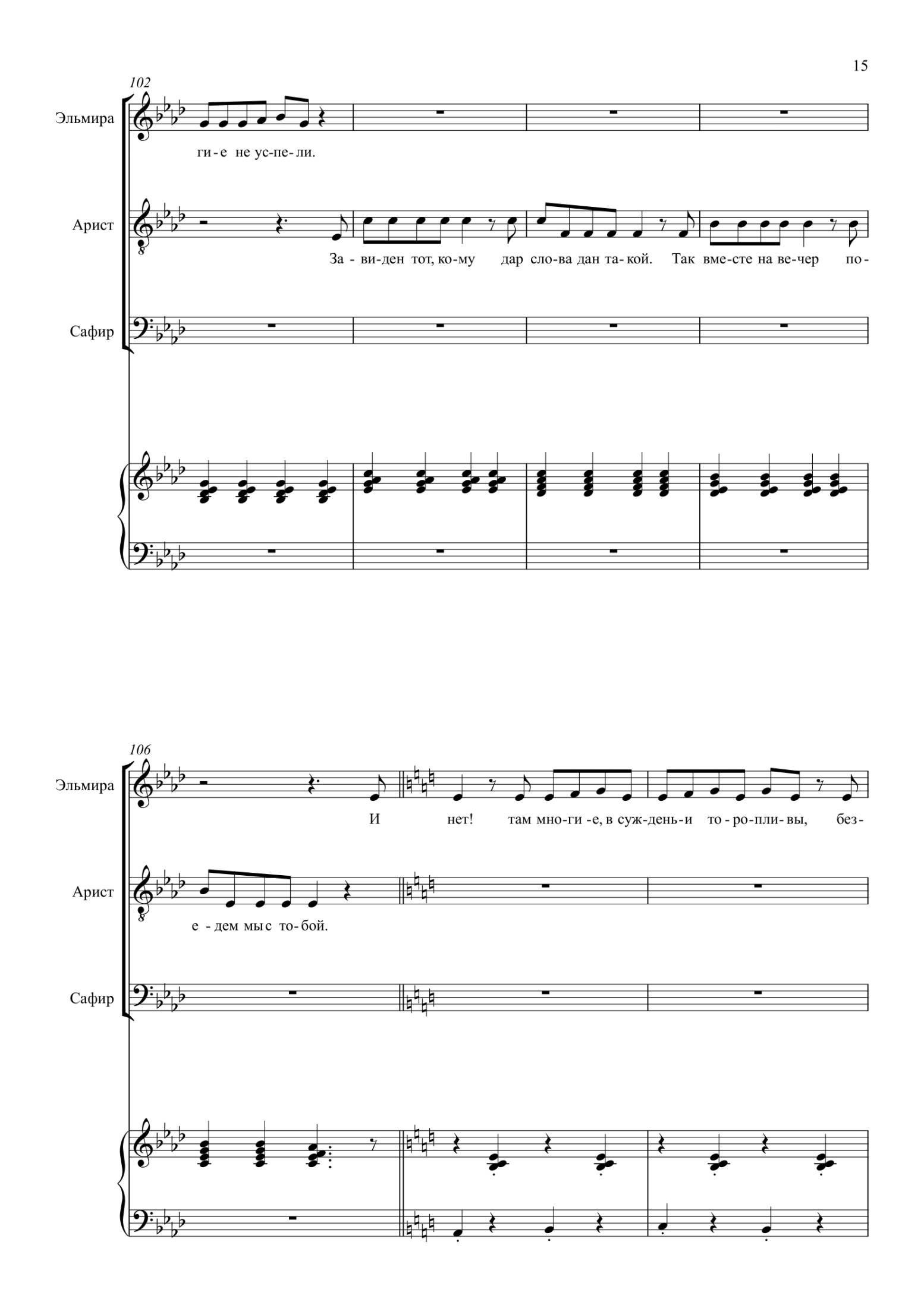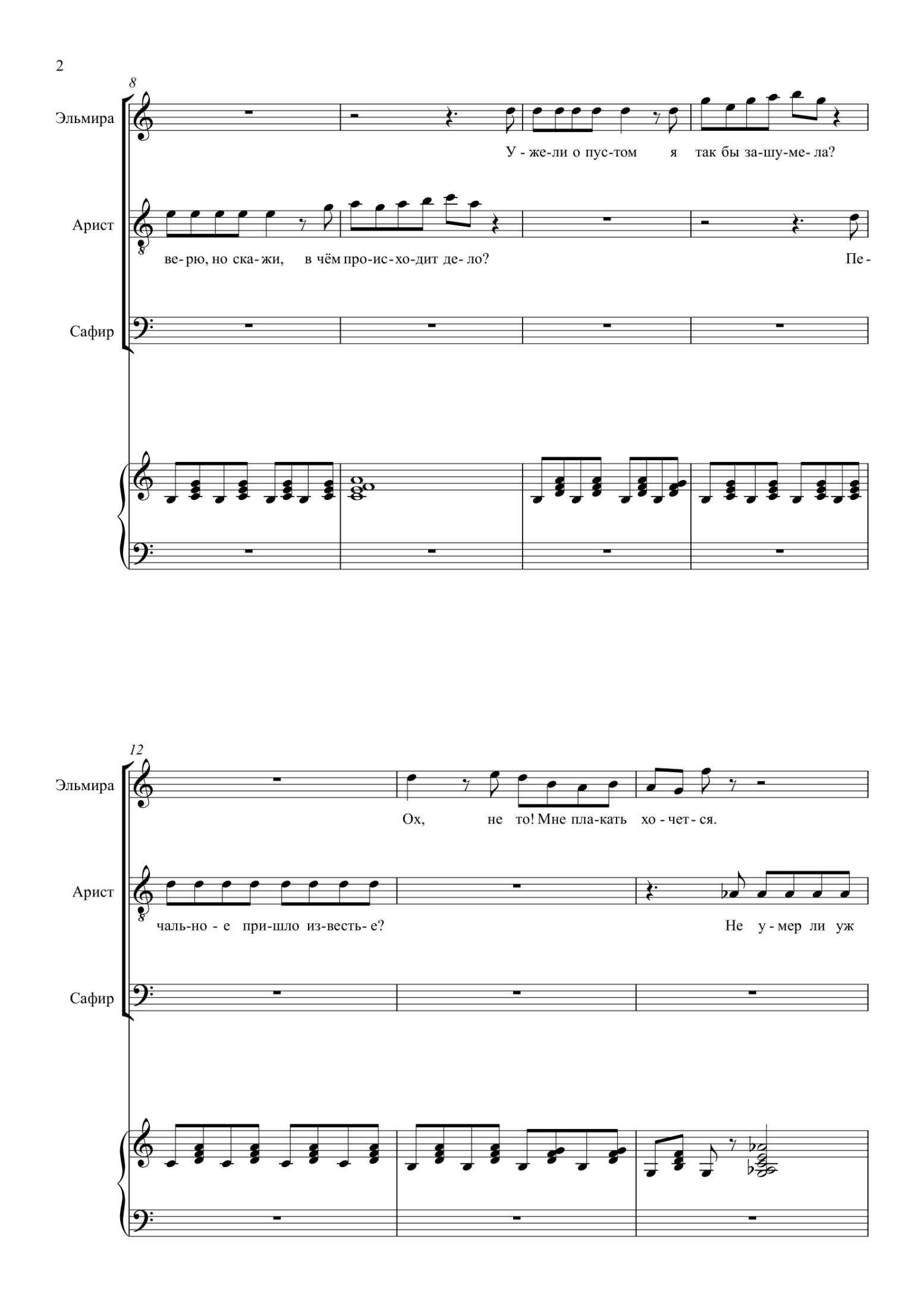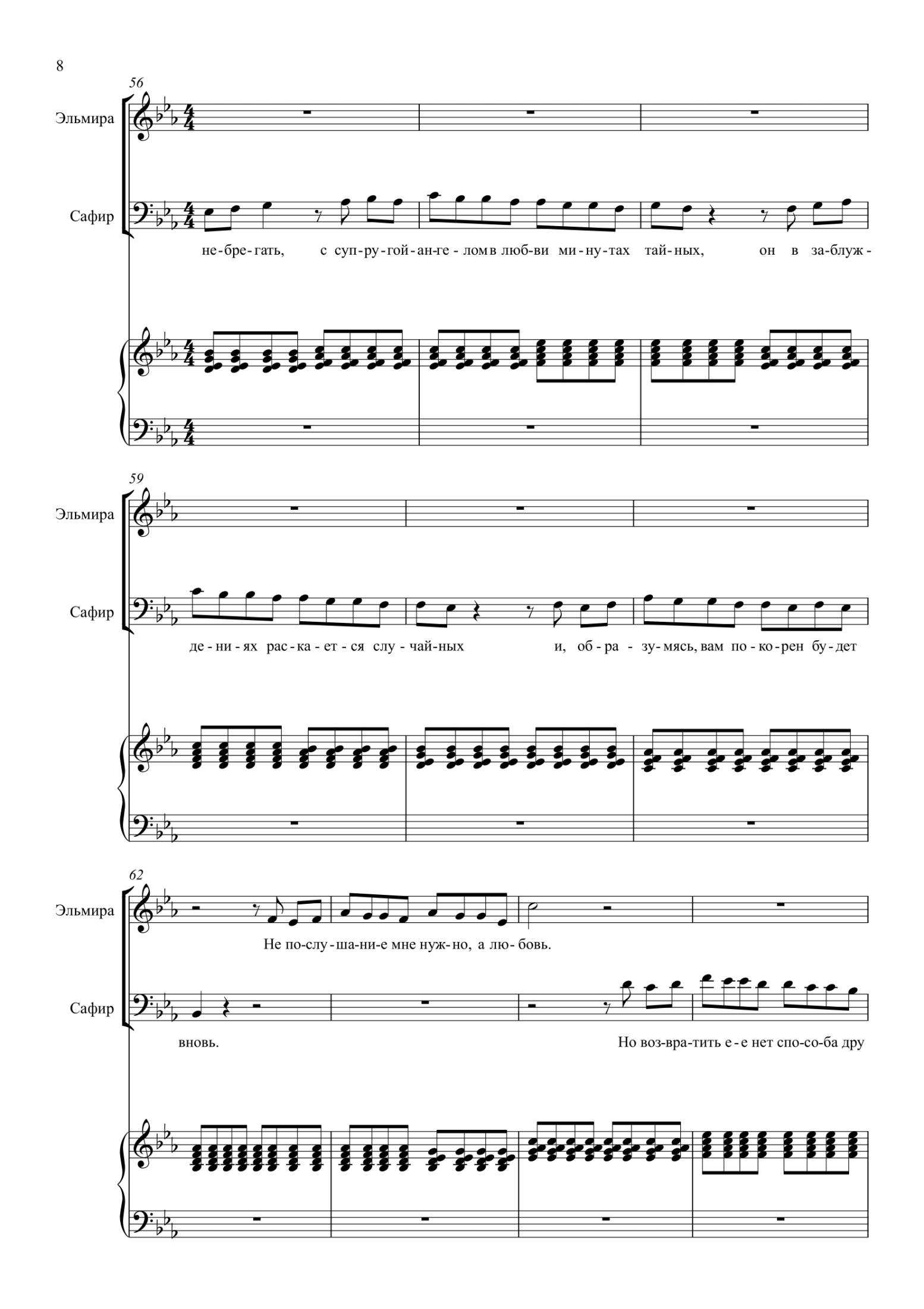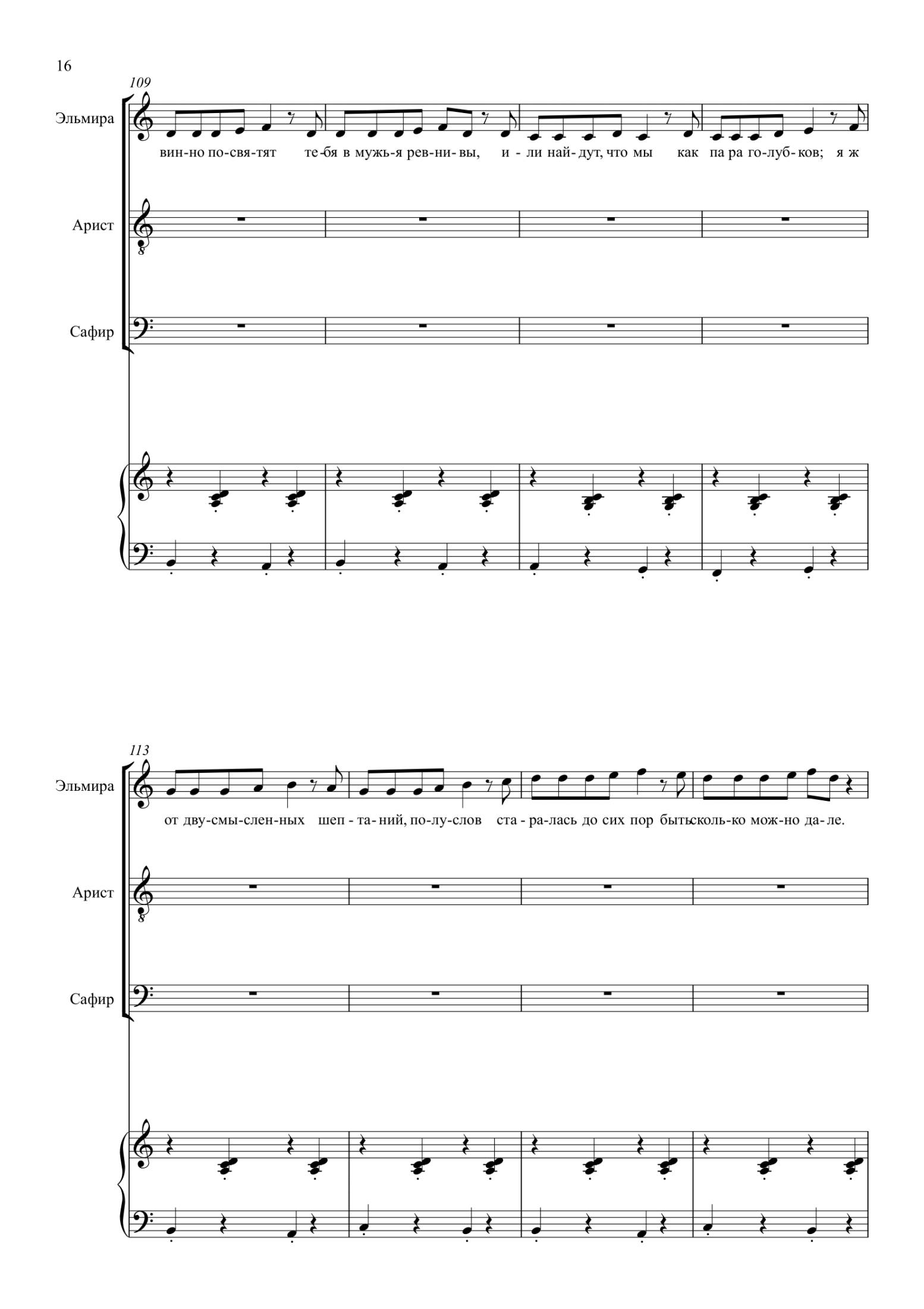 Комедия в одном действии 'Молодые супруги' (автор либретто – А. С. Грибоедов, 1814) для сопрано, тенора и баритона в сопровождении фортепиано