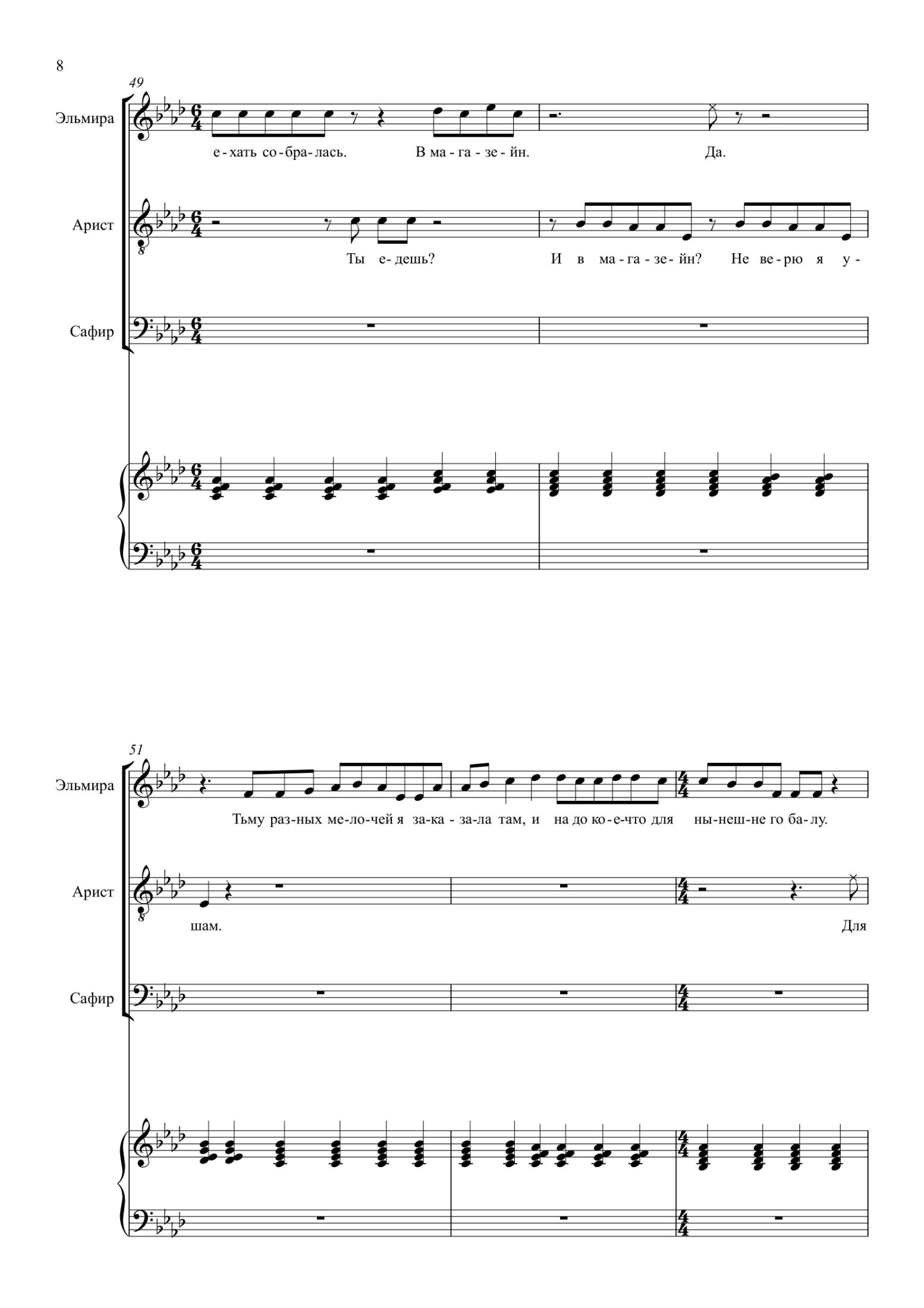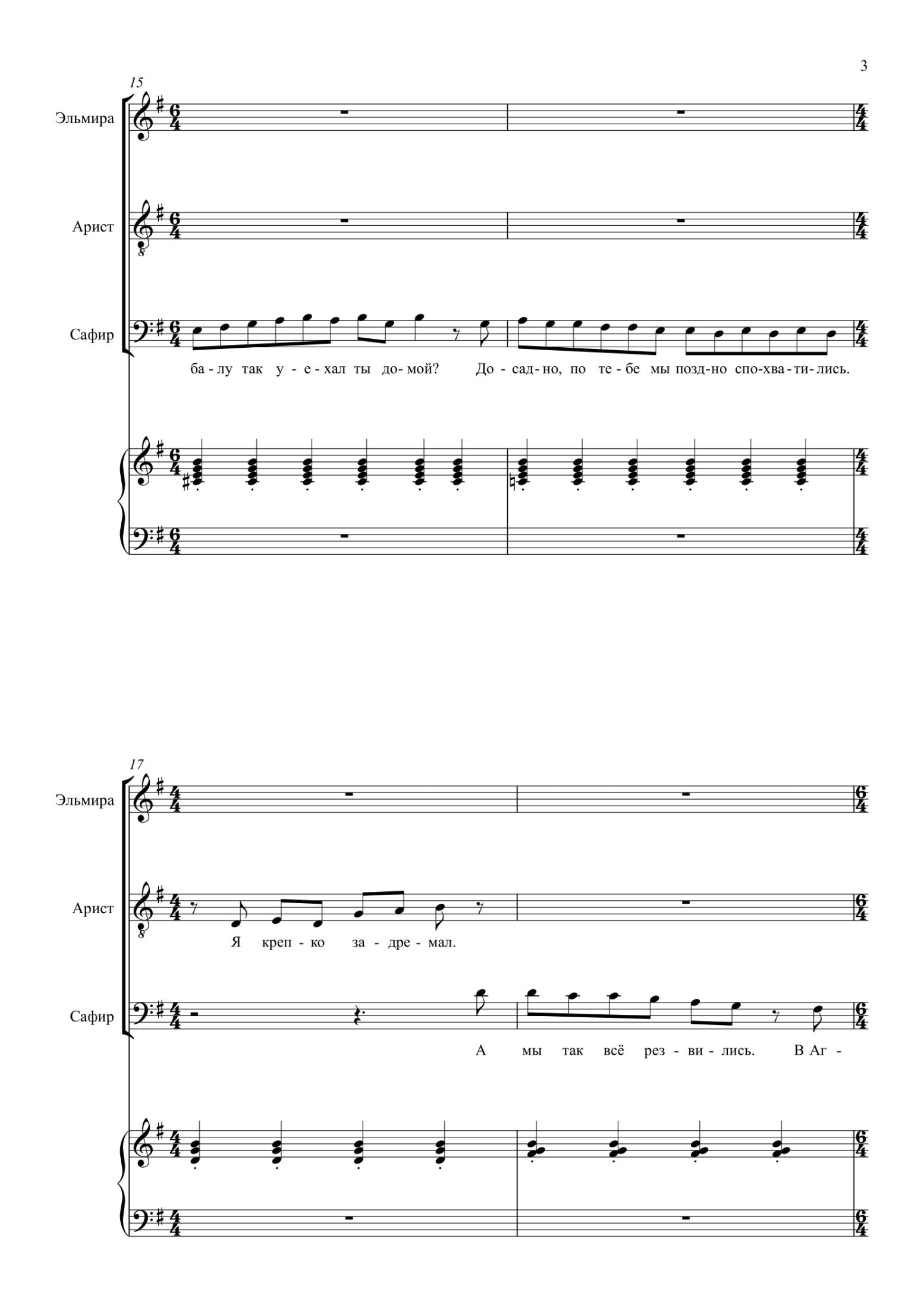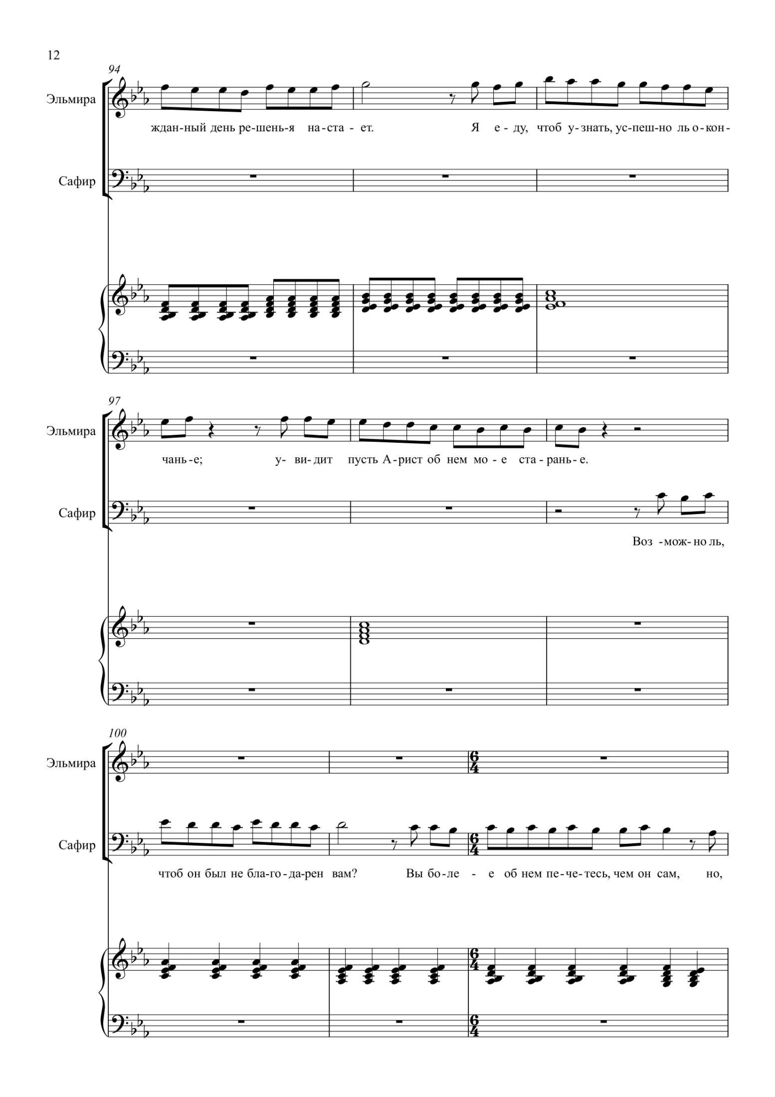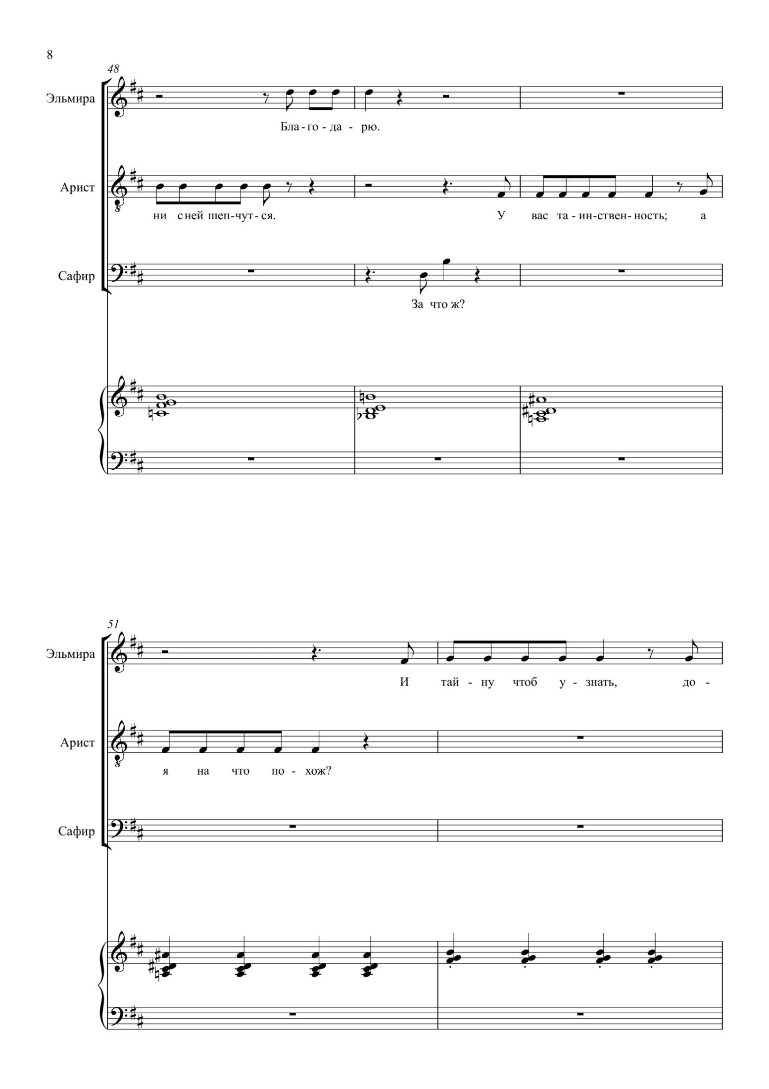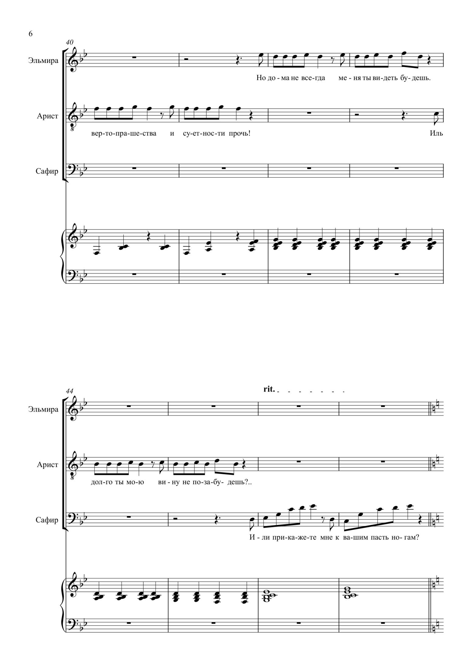 Комедия в одном действии 'Молодые супруги' (автор либретто – А. С. Грибоедов, 1814) для сопрано, тенора и баритона в сопровождении фортепиано