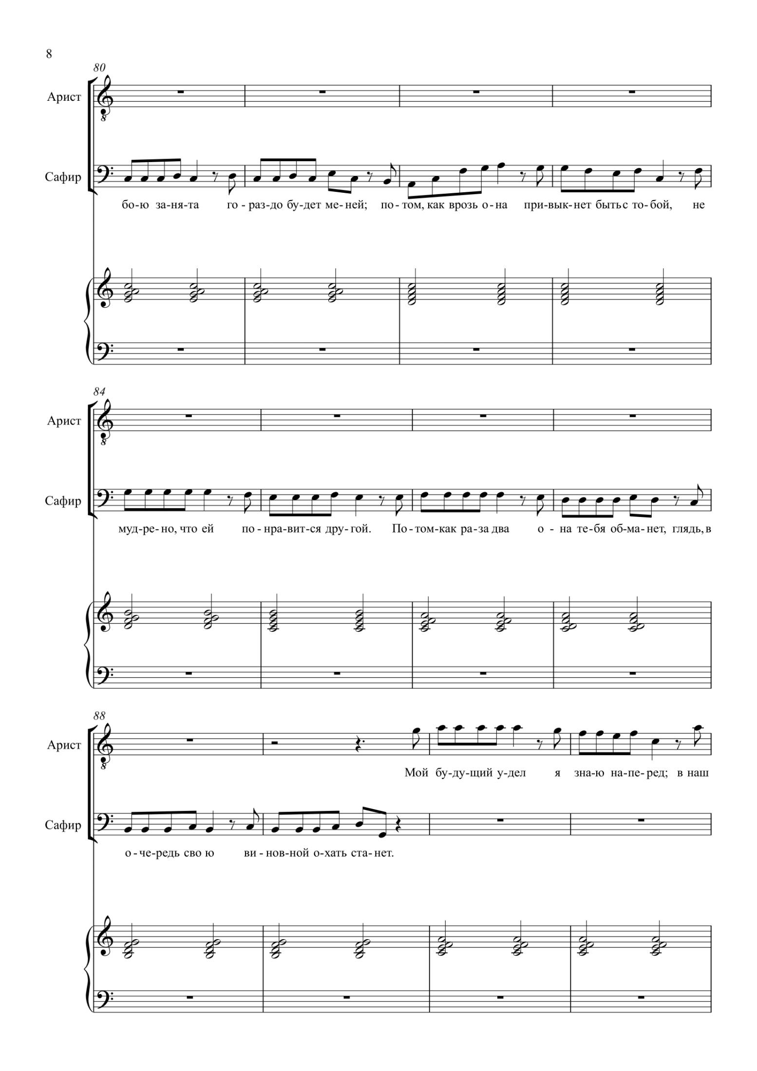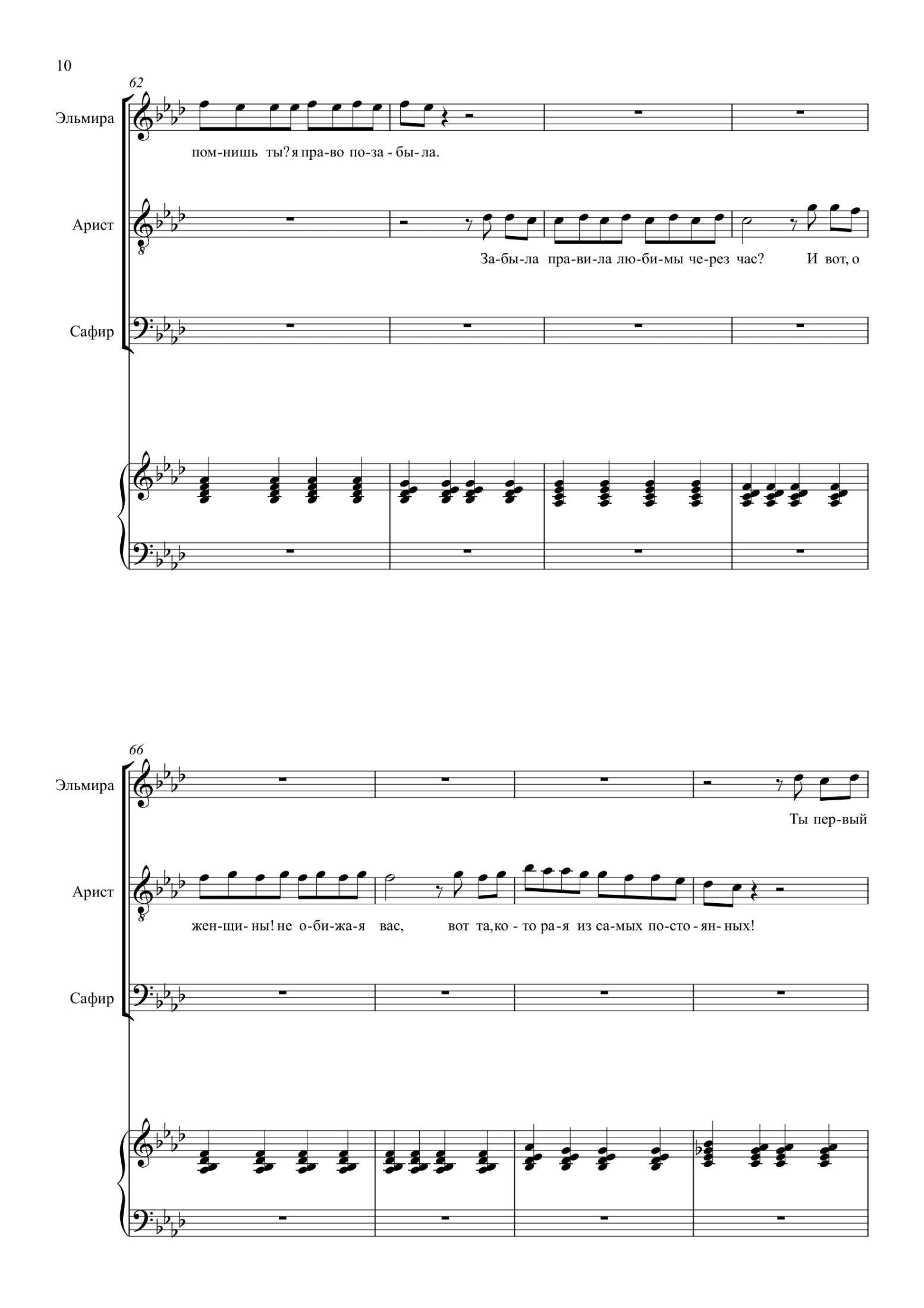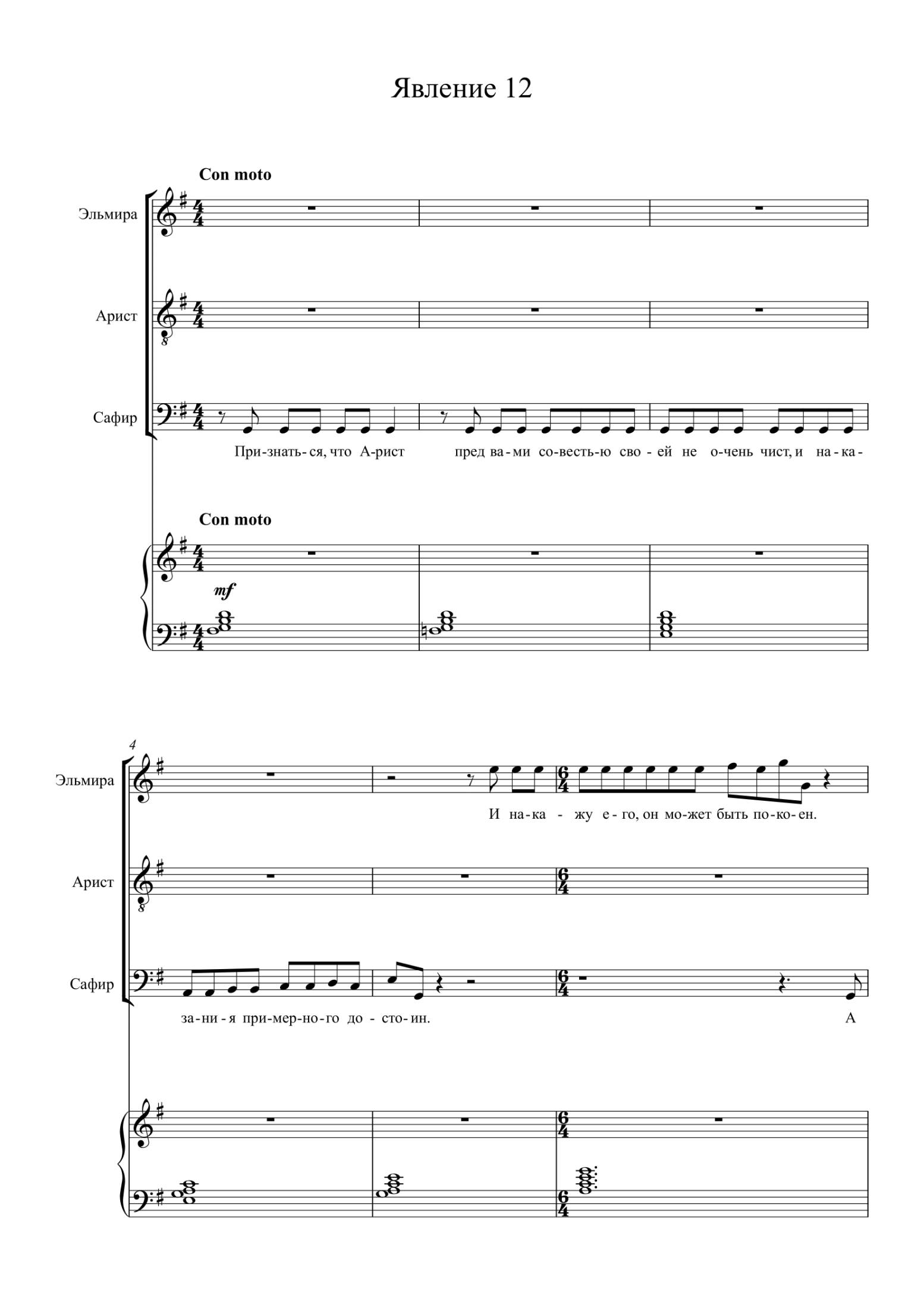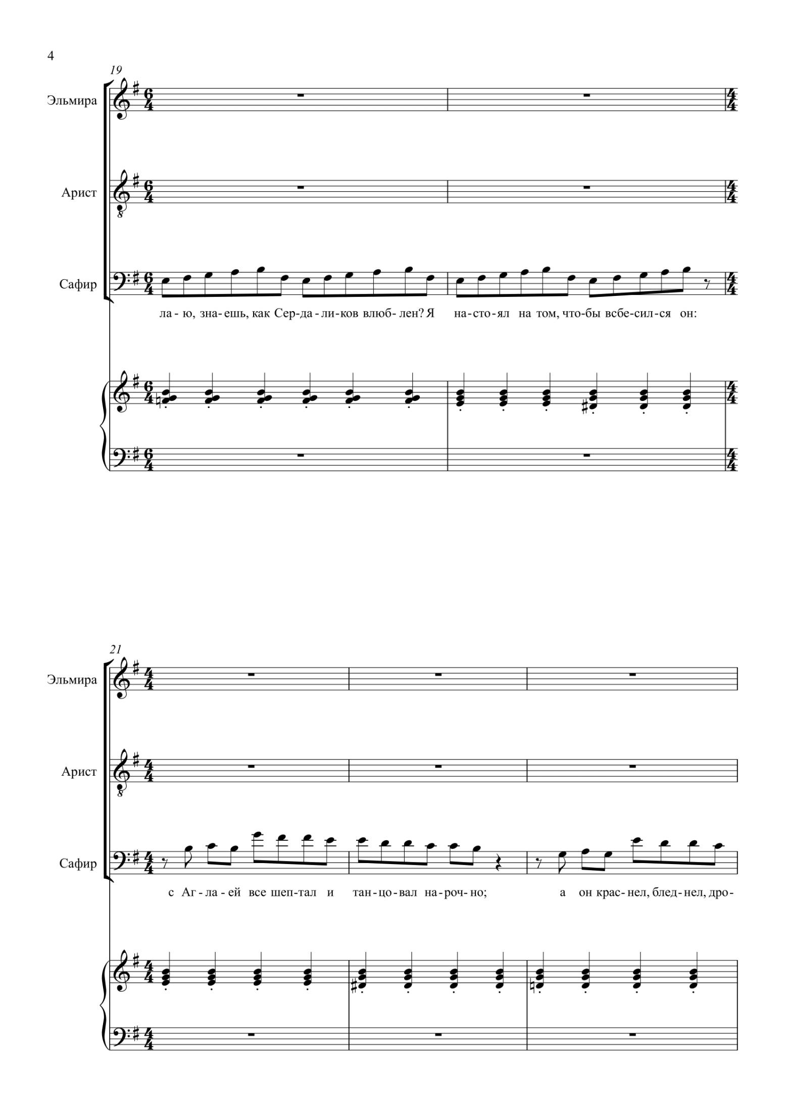 Комедия в одном действии 'Молодые супруги' (автор либретто – А. С. Грибоедов, 1814) для сопрано, тенора и баритона в сопровождении фортепиано