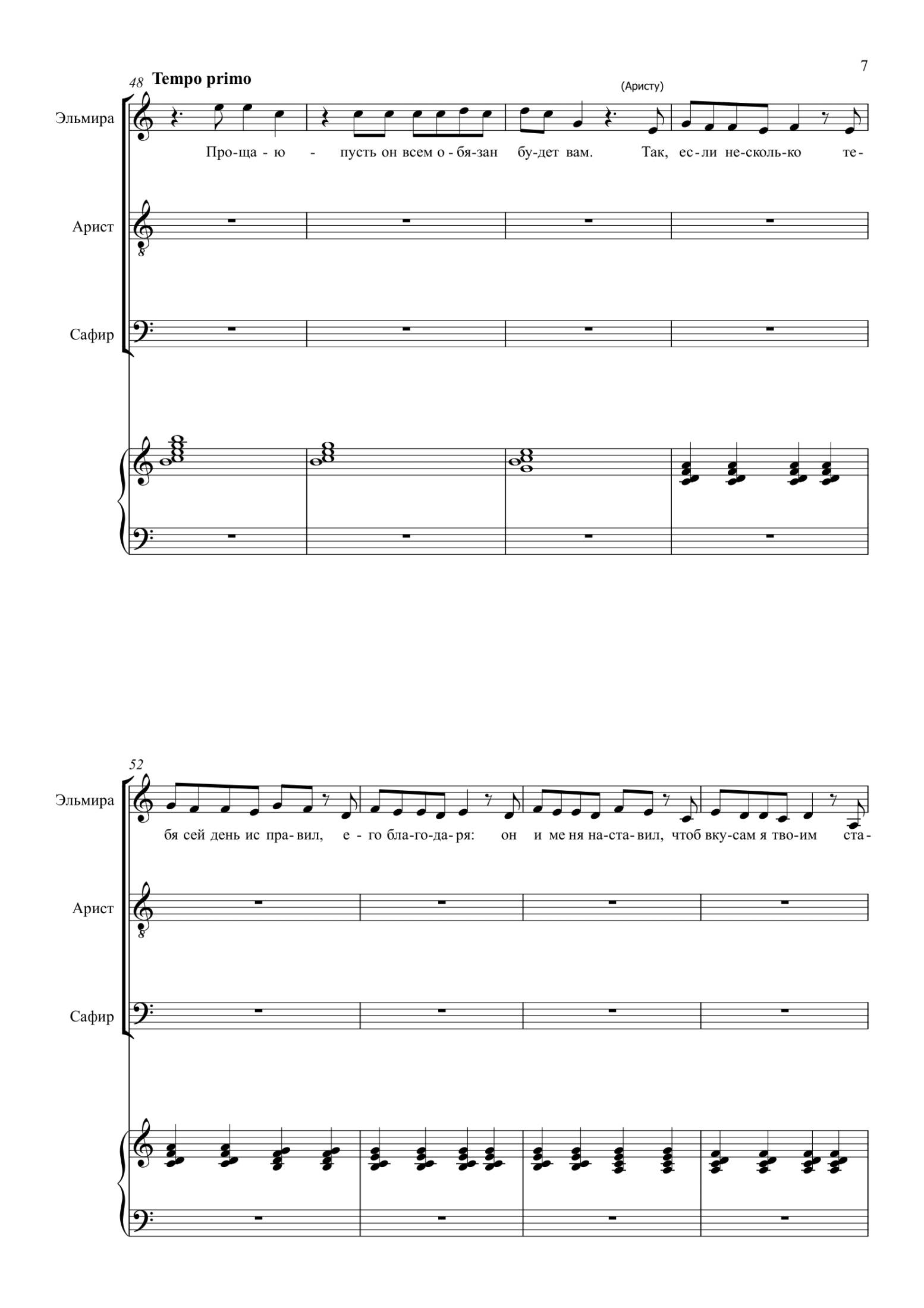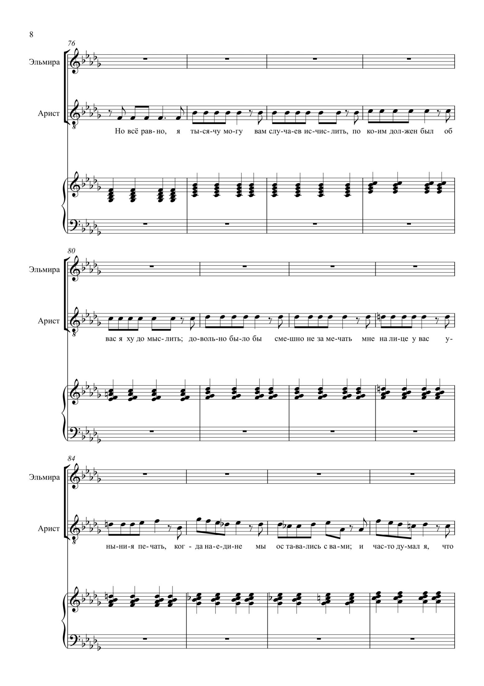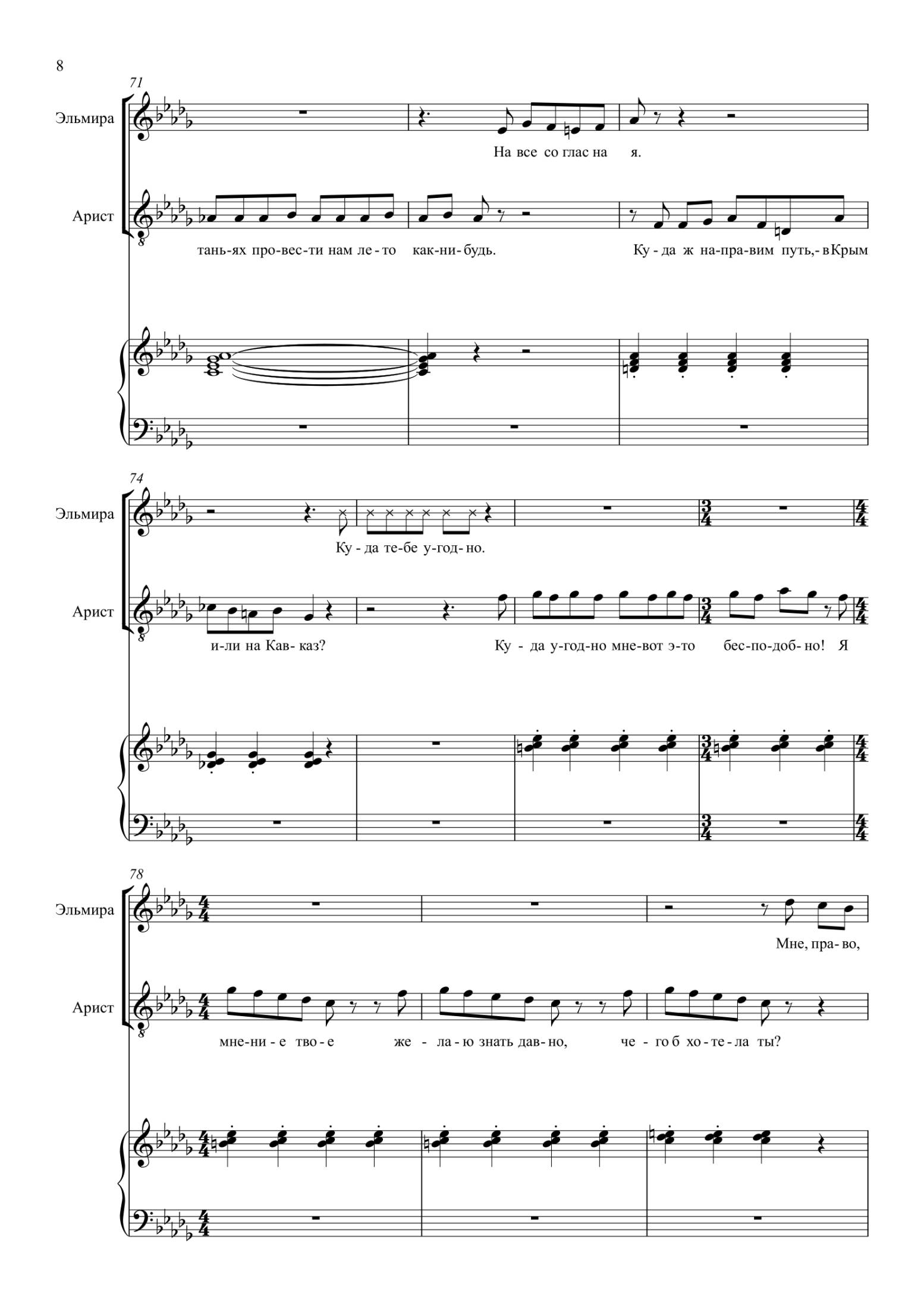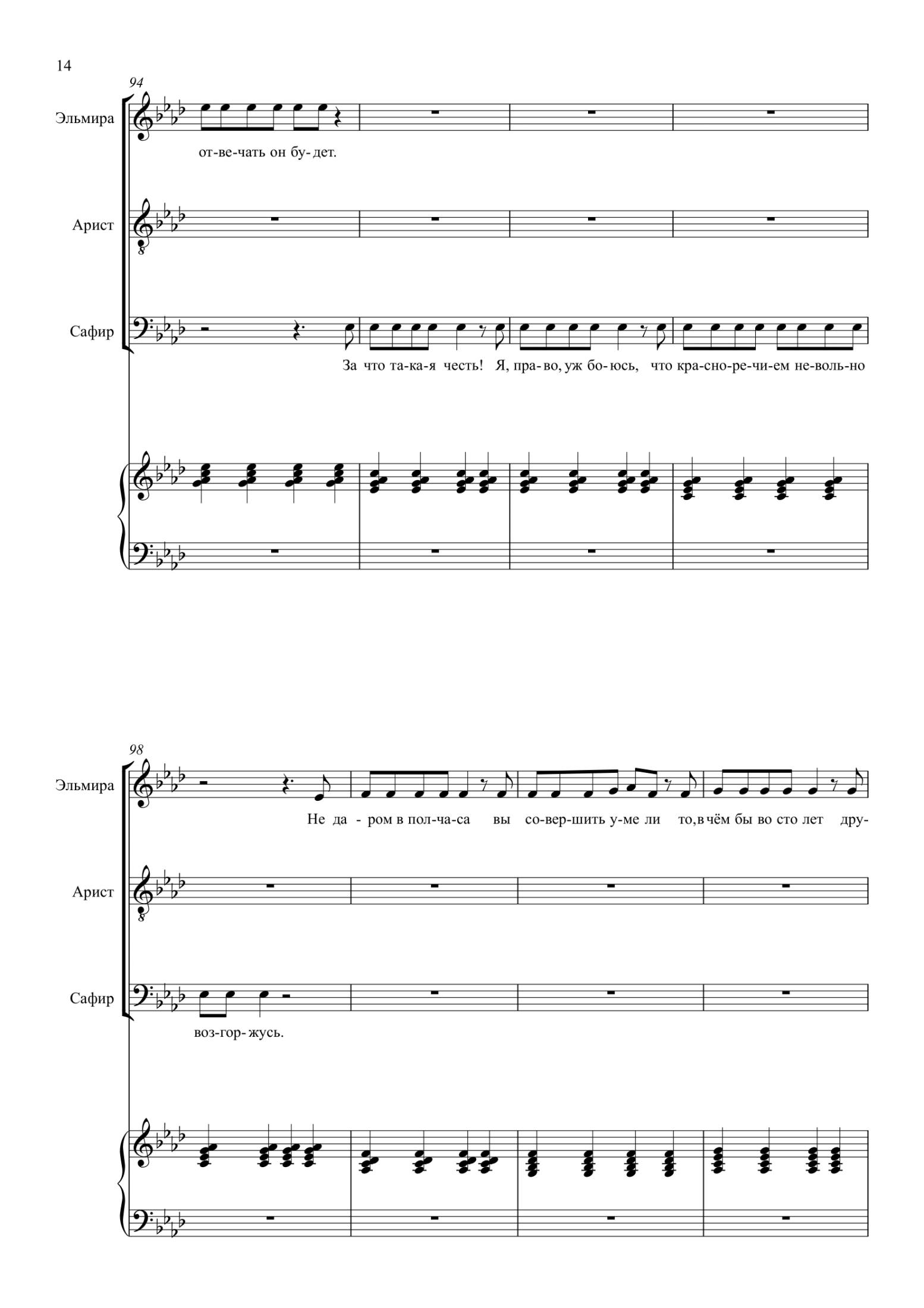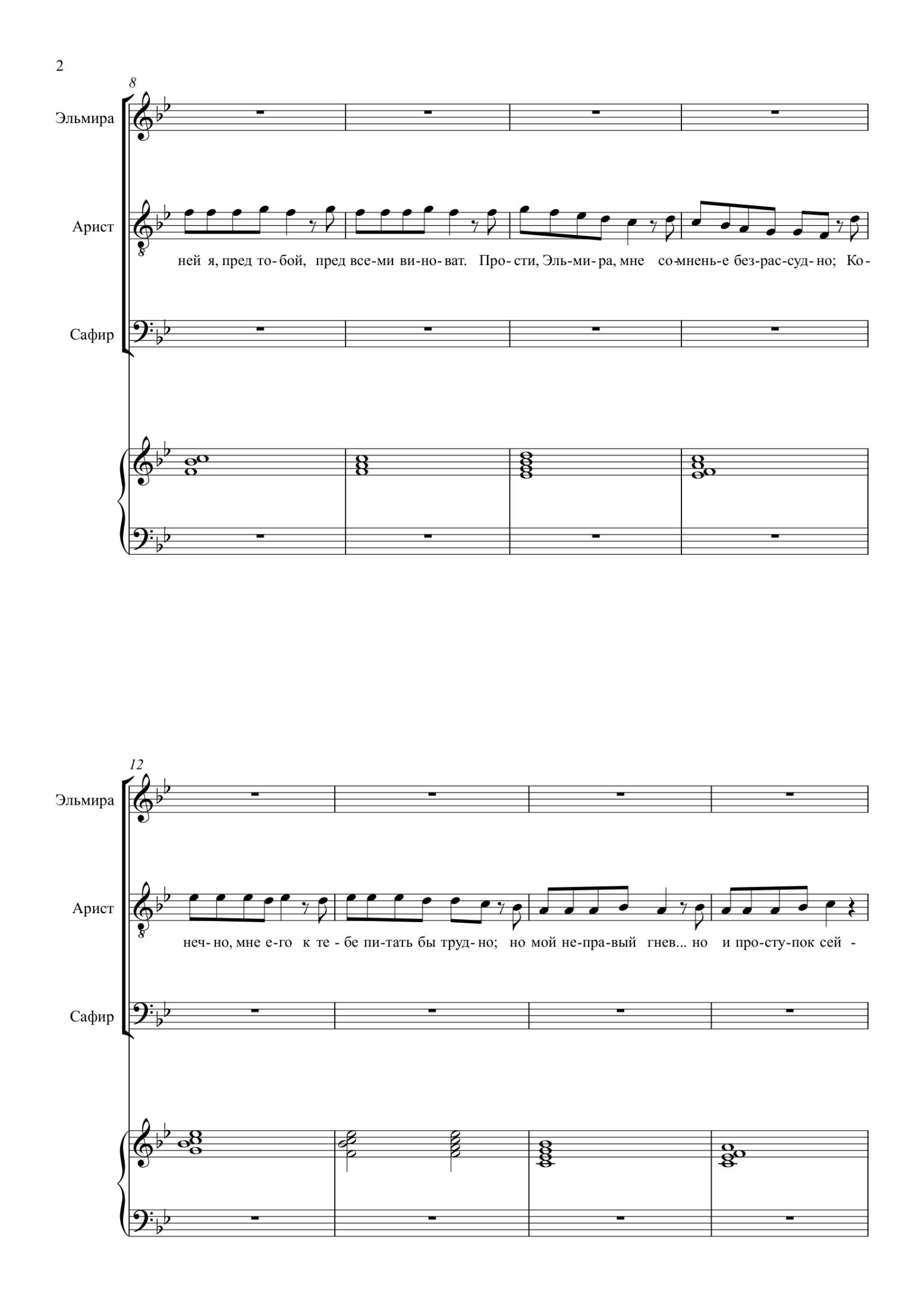 Комедия в одном действии 'Молодые супруги' (автор либретто – А. С. Грибоедов, 1814) для сопрано, тенора и баритона в сопровождении фортепиано
