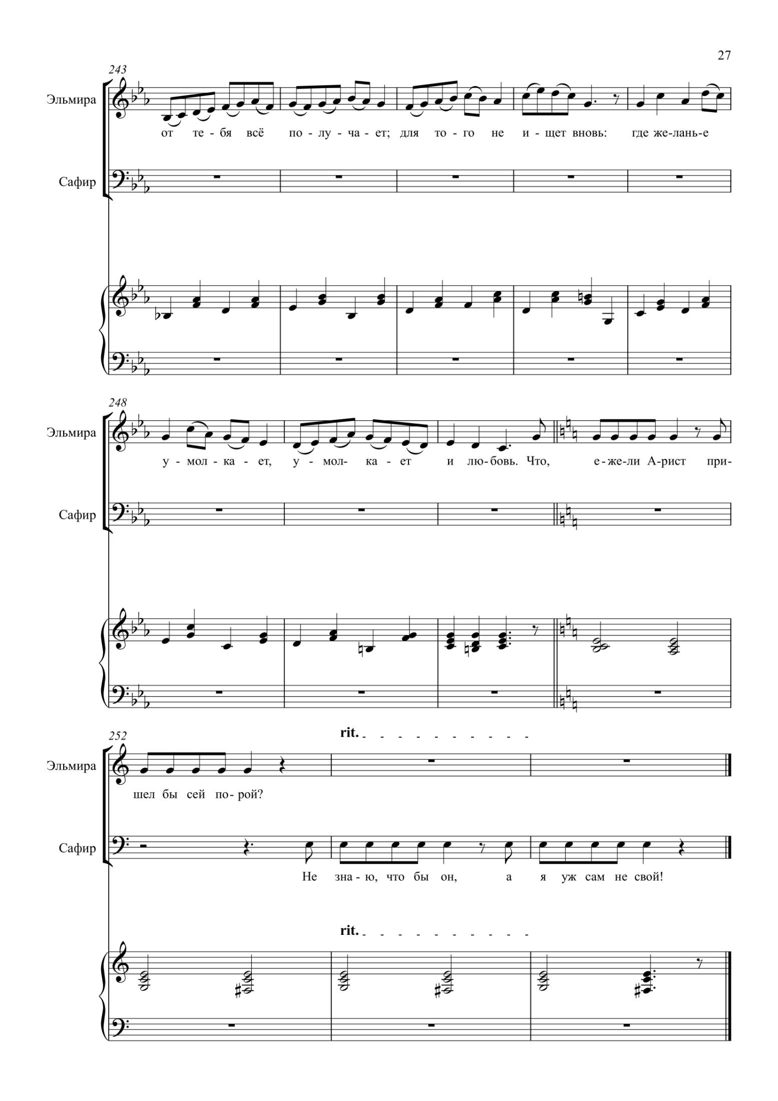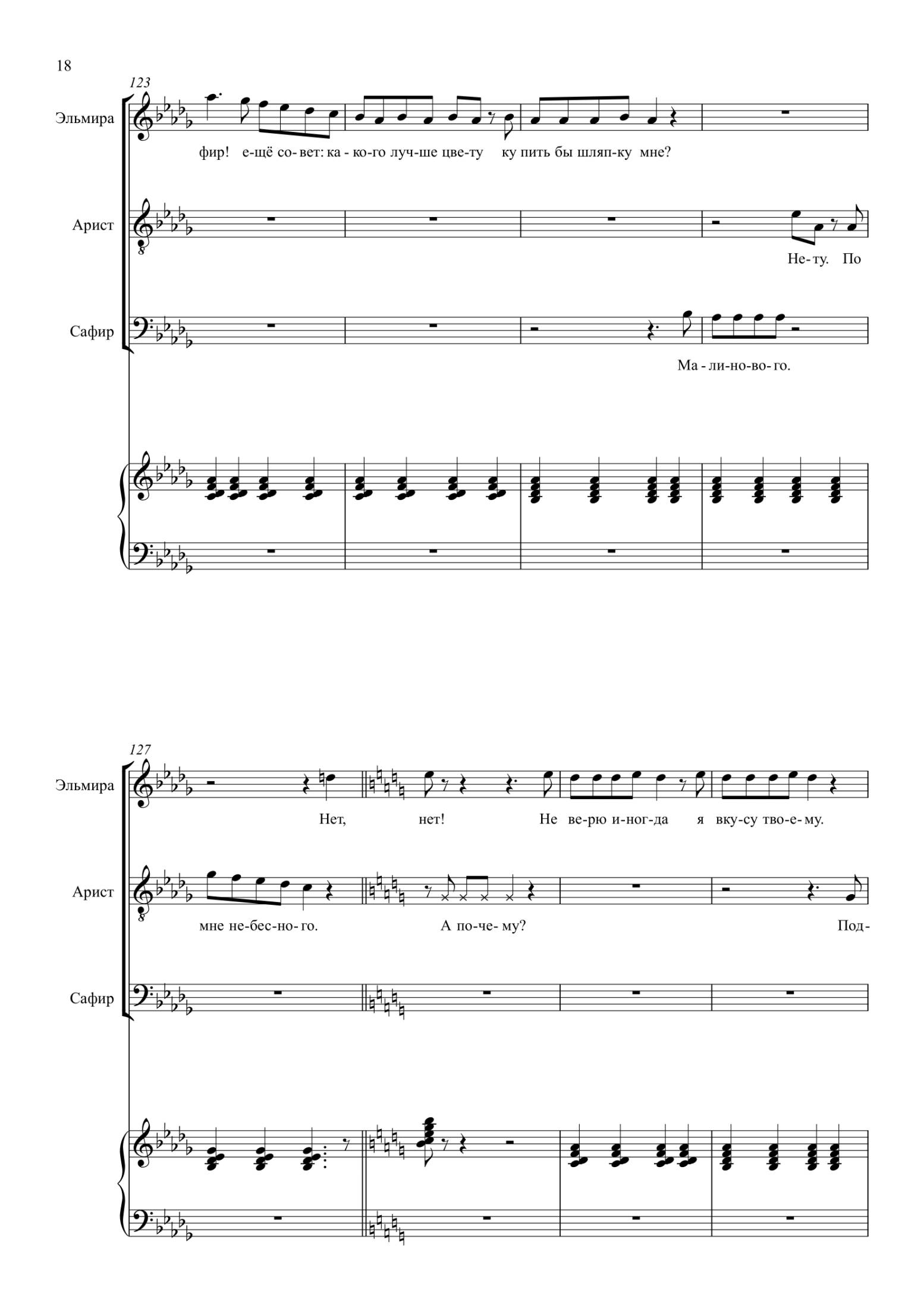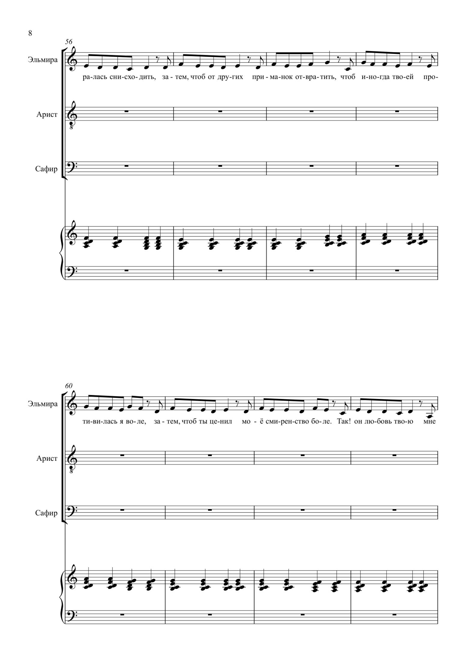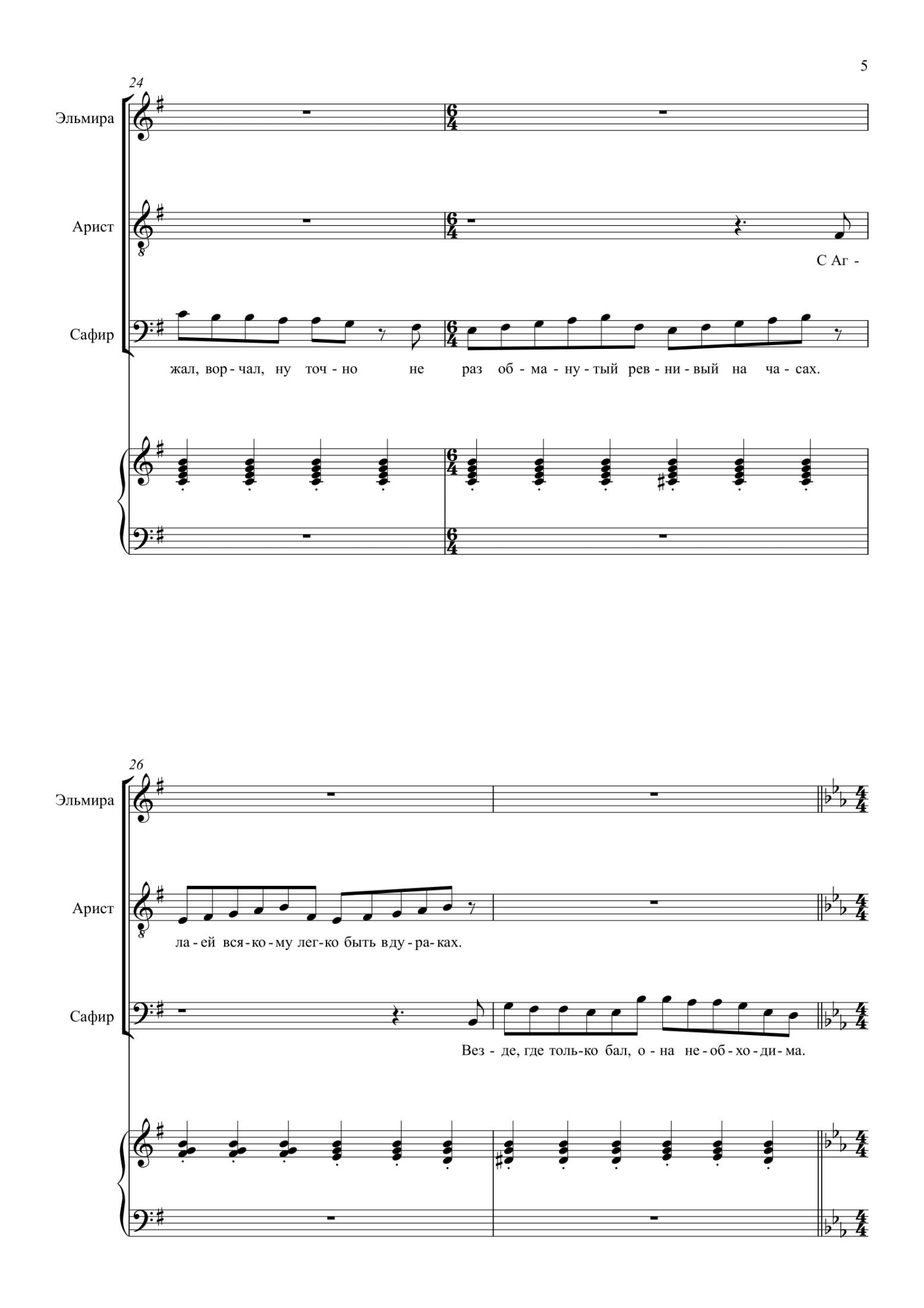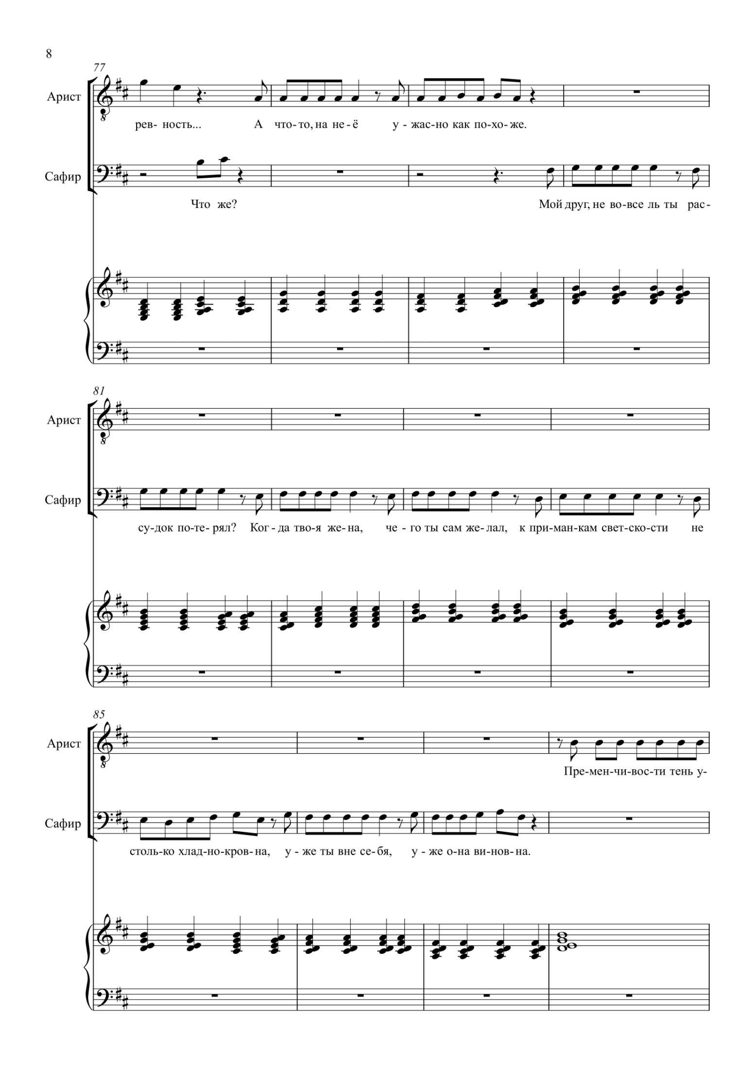 Комедия в одном действии 'Молодые супруги' (автор либретто – А. С. Грибоедов, 1814) для сопрано, тенора и баритона в сопровождении фортепиано