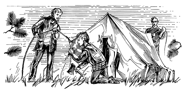 Палатка была в отличном состоянии: выгоревшая, пропахшая дымом походных костров, прожженная искрами не более чем в двадцати местах. Мы хорошенько выбили ее, вытряхнули из ее карманов пожелтевшие хвойные иглы и туго скатали, как учил папа.