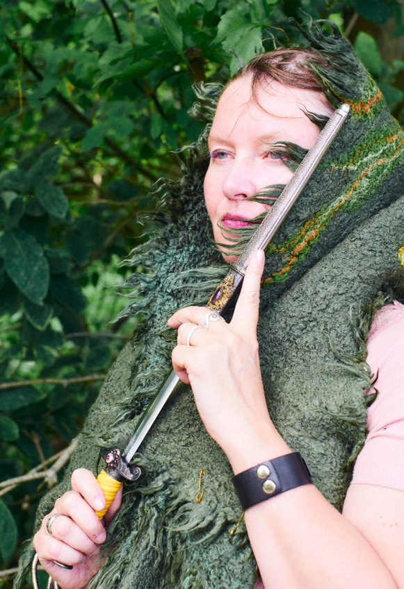 Надо сказать, что я боюсь оружия, но сейчас понимаю, что надо менять философию. Мир становится другим, более опасным, и защитить себя и детей необходимо. Хотя бы выразить свою готовность это сделать в случае необходимости. Гипотетически. Встану на защиту людей, пока в мифологическом пространстве. Знаю про себя одно: в гневе я страшна, и лучше не злить. И меч Артура всегда хотела вытащить, метафорически, это значит распаковать древние сакральные знания, войти в собственную мощь и силу. Женщины в истории это уже делали. Сейчас нахожусь в Грузии, где любимая историческая личность – Царица Тамара. Или, как они говорят, Цар Тамар, с оружием она точно была знакома не по наслышке. И пусть это оружие будет другом и помощником, пусть защищает, и учит отделять правду от лжи, свет от мрака. Как сказал один знакомый: «Если уж женщина взяла в руки оружие, то действительно, по-настоящему, достали».