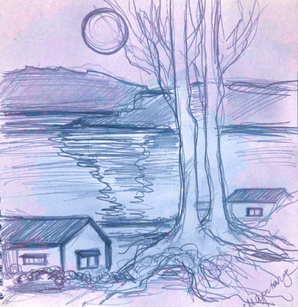 Рисую крайне мало в последнее время. Сегодня зимний пейзаж нарисовала, вдохновили японцы. Культура Японии очень утонченная и музыкально-чувственная, буду изучать.