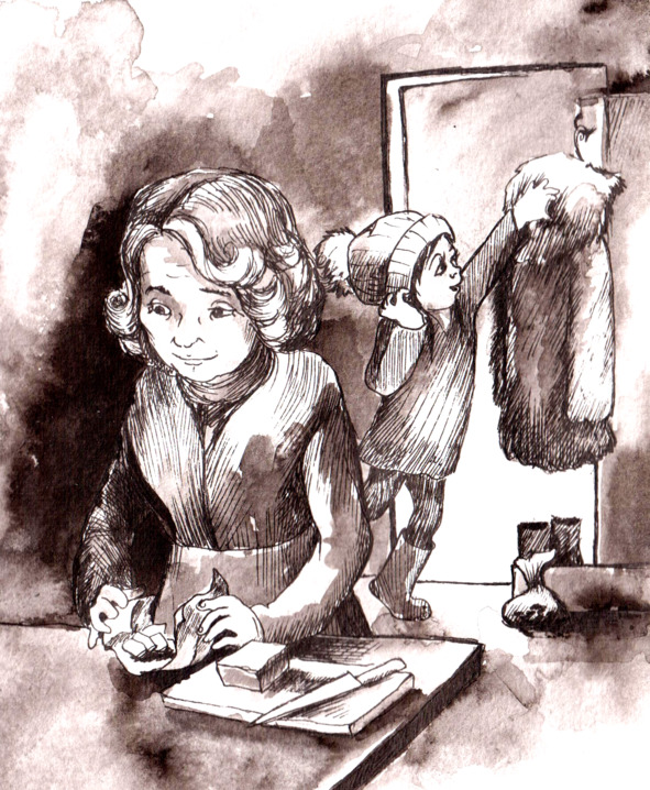 Девчушка быстро обула валенки, надела шубку, шапку, взяла из мешочка горсть семечек и побежала на улицу.