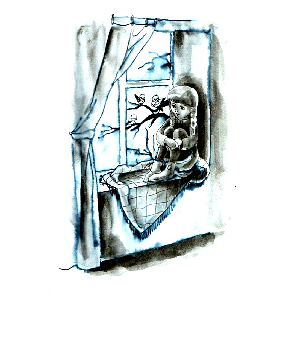 Как-то Анюта сидела на подоконнике и наблюдала за воробьями и синичками, которые столовались в кормушке.