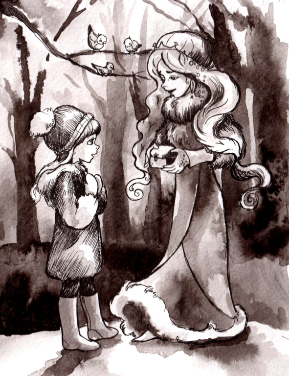 – Что же я наделала? Всех разогнала такою непогодою. Люди не гуляют. Птицы не летают. Звери все в норки спрятались, а рыбки подо льдом скрываются. Хоть метели я люблю, но сейчас хочу веселья! Тучи надо разогнать. Солнце пусть сверкает.