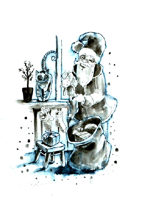Долго думал Дедушка, как же ему теперь быть, что делать? Куда класть новогодние подарки для детей? Думал он, думал и выдумал.
