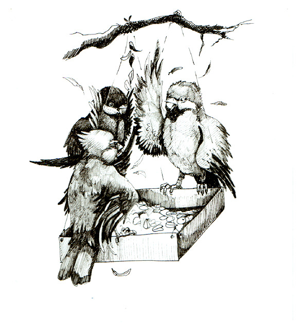 – А у нас, что же, не будет кормушки? – возмутилась старшая синичка.