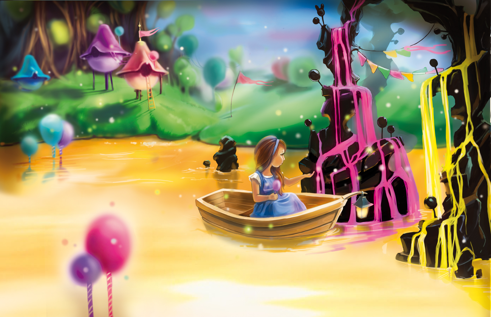 Не успела Сонита об этом подумать – как вот она уже плывет в лодочке по разноцветной реке. По одну сторону остался городок из сладкой ваты, по другую – с красивых гор водопадами спускались ручьи. Каждый водопад был своего цвета. Сонита подплыла к первому, ярко оранжевому, зачерпнула из него ладошками и попила.