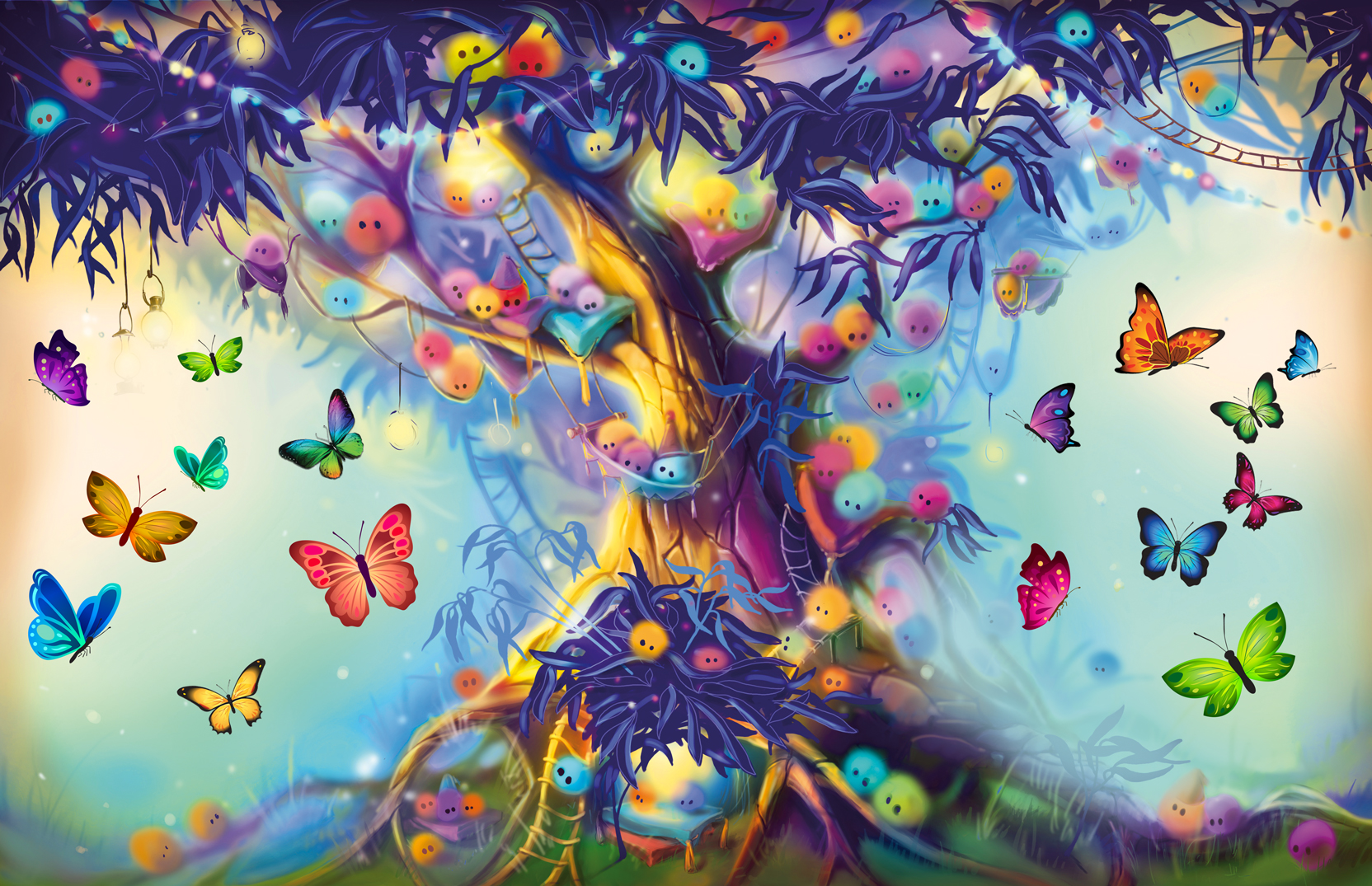 Девочка стала представлять, как бы могла выглядеть страна Храпуния. Оставив Мягусика с Мудрым Ё, она полетела к большому дереву, на котором вместо листочков сидели пушистые шарики с глазками.