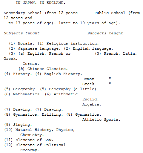 The appended table will help any Public School boy or his parents to estimate the vast difference between the Japanese and the English conceptions of a liberal education.