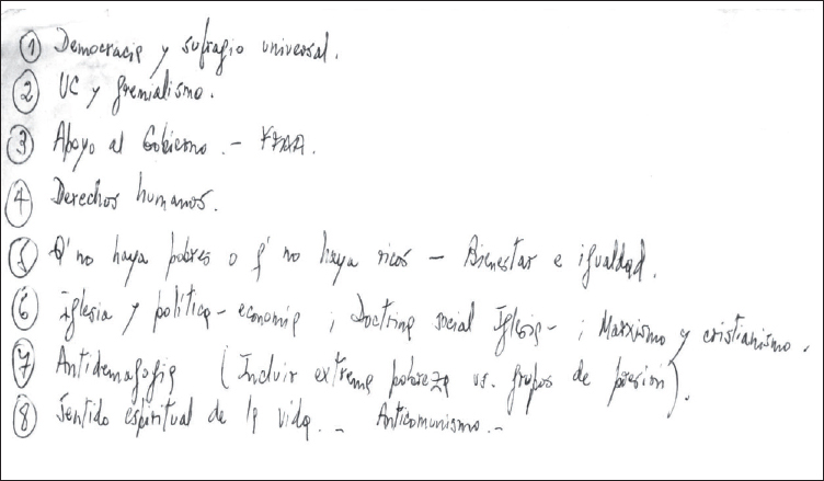 Las consignas eran similarmente compactas y cerradas de parte de quienes sustentaban posiciones más conservadoras y de aquellos que convocaban a aventuras revolucionarias. El éxito que estas últimas alcanzaron entre 1964 y 1973, bajo las sucesivas fórmulas de la Democracia Cristiana y el marxismo-leninismo que gobernaron al país en ese decenio, fue el fruto de un ambiente general que hacía más atrayentes las consignas revolucionarias, de grandes mitos globalizantes frente a la sociedad.