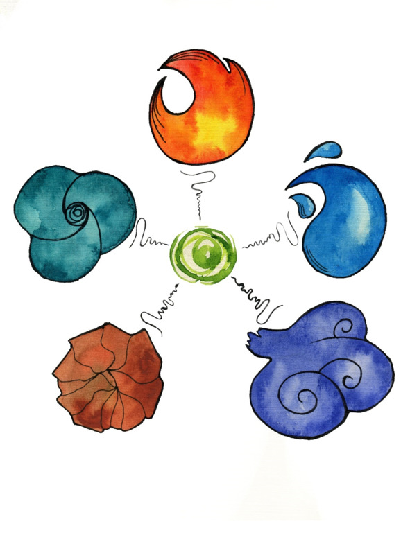 Например, в древней ведической традиции существует учение о 5 первоэлементах, из которых состоит всё сущее: огонь, вода, воздух, земля, эфир.