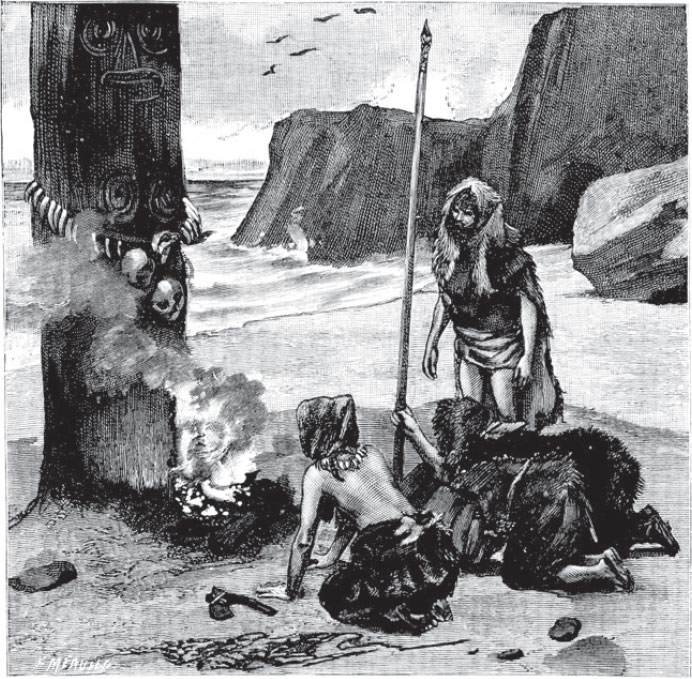 На этой возвышенности никогда не было человеческого жилья. Только у подножия утеса, в расселинах скал, ютились в давние времена первобытные обитатели этой страны, у которых не было дерева для постройки хижин; оружием им служила праща, топливом – сухой коровий помет, божеством, которому они поклонялись, был идол Чейл, стоявший на лесной прогалине в Дорчестере, весь же их промысел сводился к ловле серого коралла, который валлийцы называют plin, а греки – isidis plocamos.