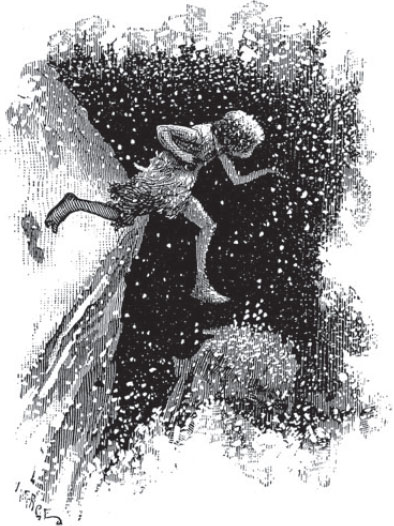 Он перепрыгивал с утеса на утес, рискуя вывихнуть ногу или свалиться в невидимую пропасть. Чтобы удержаться на льду при спуске со скалы, он хватался руками за тонкие длинные ветки дикого терна или за усеянные шипами кусты утесника, и колючие иглы их вонзались ему в пальцы. Кое-где склон был не так крут, и тогда ребенок отдыхал, но рядом опять начинался обрыв, и снова приходилось рассчитывать каждый шаг. При спуске в пропасть надо быть ловким, иначе грозит смерть; каждое движение – решение задачи. Эту задачу ребенок разрешал с врожденным искусством, которому позавидовали бы обезьяны, и с таким умением, которому подивился бы акробат. Склон был крут и длинен. Тем не менее ребенок находился почти внизу.
