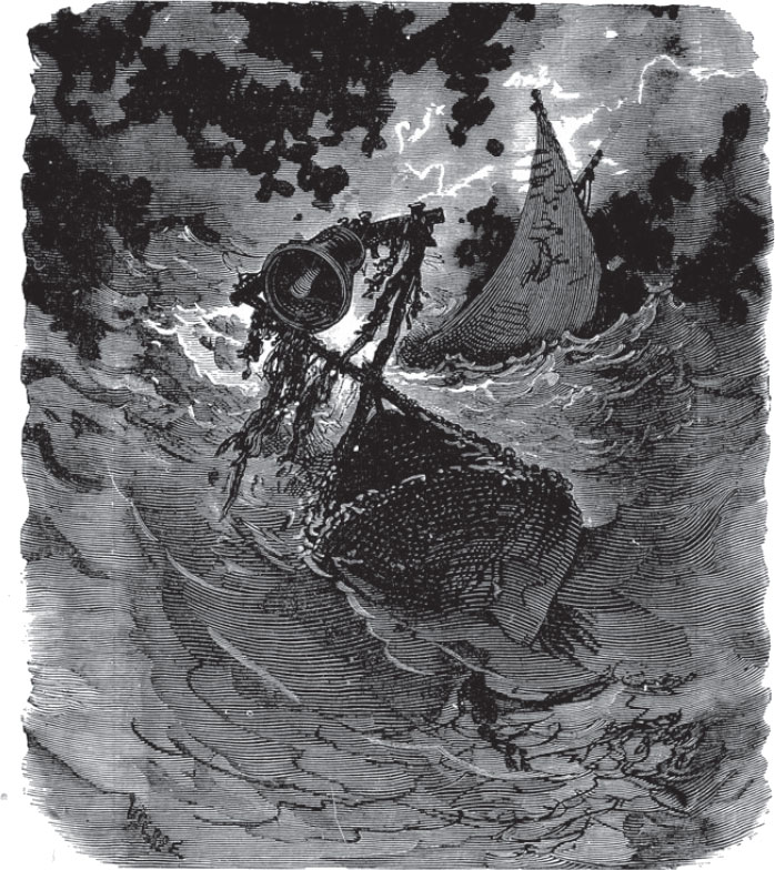 Нигде эта близость неведомого не ощущается более явственно, чем на море, во время бури. Здесь ужас возрастает от фантастической обстановки. Древний тучегонитель, по своему произволу меняющий течение людских жизней, располагает здесь всем, что ему требуется для осуществления любой своей причуды: непостоянной, буйной стихией и рассеянными повсюду равнодушными силами. Буря, природа которой остается для нас тайной, только исполняет приказания, ежеминутно повинуясь внушениям чьей-то мнимой или действительной воли.