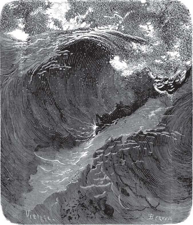 Начиналась жестокая пытка водной стихии, от века терзаемой бурями. Из морской пучины вырывался жалобный стон. На всем безмерном пространстве ее совершались зловещие приготовления. Доктор смотрел на все, творившееся у него перед глазами, не упуская ни малейшей подробности. Но его взгляд не был взглядом созерцателя. Нельзя спокойно созерцать ад.