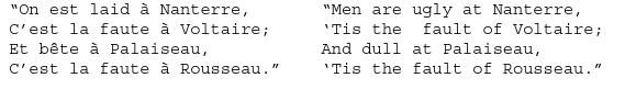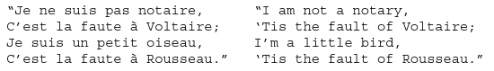 “The swans [cygnes] understand signs [signes],” said the bourgeois, delighted to make a jest.