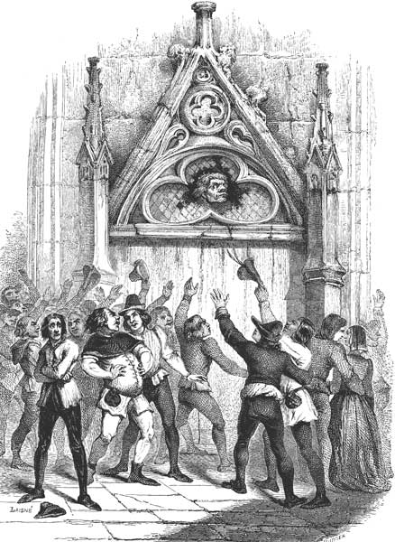 Одобрение было единодушным. Толпа устремилась к часовне. Оттуда с торжеством вывели почтенного папу шутов. Но только теперь изумление и восторг толпы достигли наивысшего предела. Гримаса была его настоящим лицом.