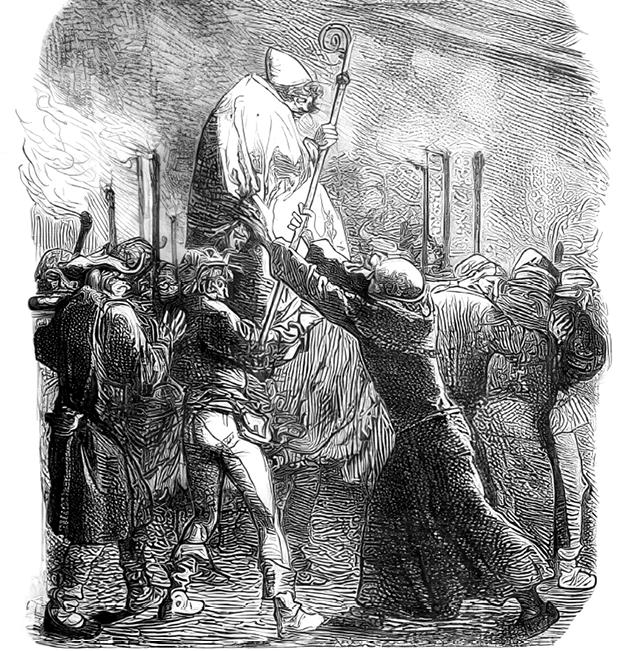 Архидьякон сорвал с него тиару, сломал его посох, разорвал мишурную мантию.