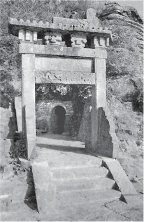 Foto 3: Um das Jahr 520 n. Chr. kam ein aus der Gegend von Madras stammender Mönch von Indien in die chinesische Provinz Henan und brachte das Chan (Zen) zum „Kloster des kleinen Waldes“ (Shaolin). Es ist denkbar, daß er das Vajramukti kannte. Fest steht, daß er dort eine bestimmte Kampftechnik lehrte und sich schließlich neun Jahre lang in eine Höhle zurückzog, um dort zu meditieren (das Foto zeigt den Eingang zu dieser Höhle). Auf diese Weise begann die Legende der unbesiegbaren Shaolin-Mönche.