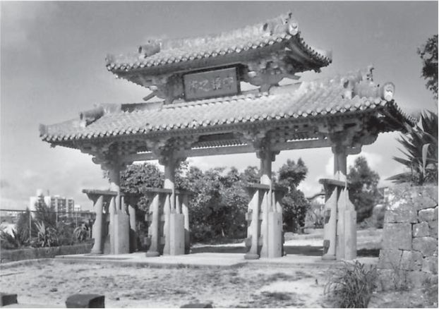 Foto 7: Shurei-no-Mon, das aus dem 15. Jahrhundert stammende Portal zum alten Palast von Naha auf Okinawa. Durch die in der Nachbarschaft von Naha gelegene chinesische Kolonie Kumemura erhielten Mitglieder der okinawanischen Kriegerelite Kenntnis von verschiedenen Shaolin-Kampfkunsttechniken.