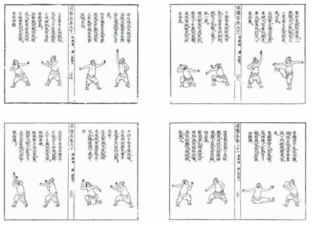 Auszug aus dem „Ji Xiao Xin Shu“, das im Jahre 1561 von Qi Jiguang veröffentlicht wurde, und in dem zum ersten Mal 32 Kampfstellungen dargestellt wurden. Sie wurden bereits in das erste Bubishi (siehe S. 23) aufgenommen und später im zweiten weiterentwickelt. – Sie auch S. 55 ff. und 295 ff.