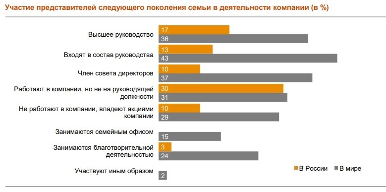 Рис. 2. Участие представителей следующего поколения семьи в деятельности компании в России и мире