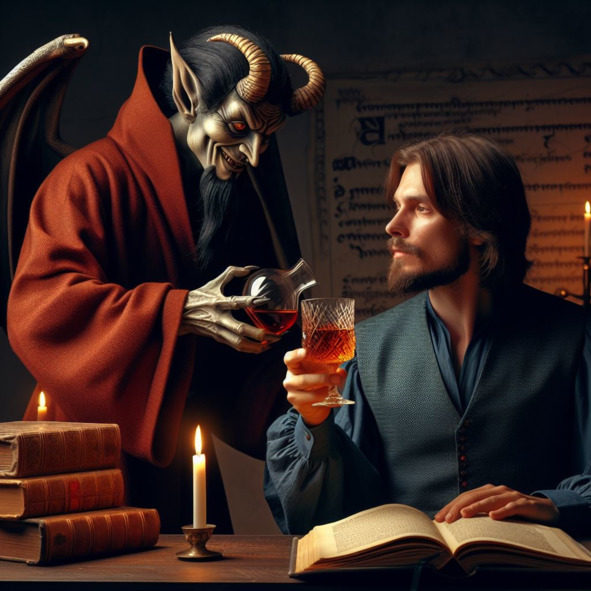 Дьявол откуда-то вытащил масляный блокнот и химический карандаш времен моего дедушки. Он плюнул карандашом, чтобы записать заказ.