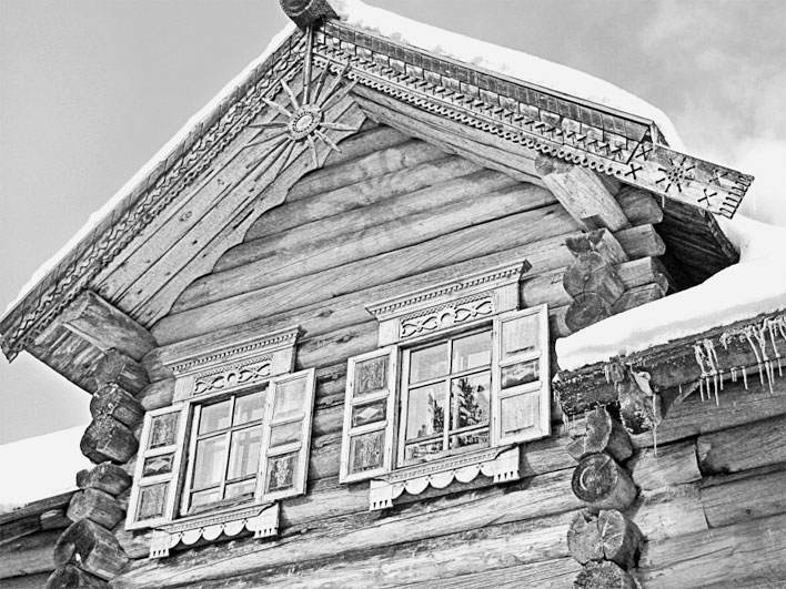 На фасаде дома традиционно изображают небо и ход солнца – утром, в полдень и вечером. И, конечно, каждый дом был выражением Яви, Нави и Прави – символов православия. Рядом с изображением солнца располагался знак земли или засеянного поля, обозначающий единство небесного и земного – Прави и Яви. Мир Яви – растения, птицы, богини, переплетающиеся с фантастическими существами Прави. Берегини – русалки и совы защищают дом от Нави (мира мертвых), вампиров и упырей.